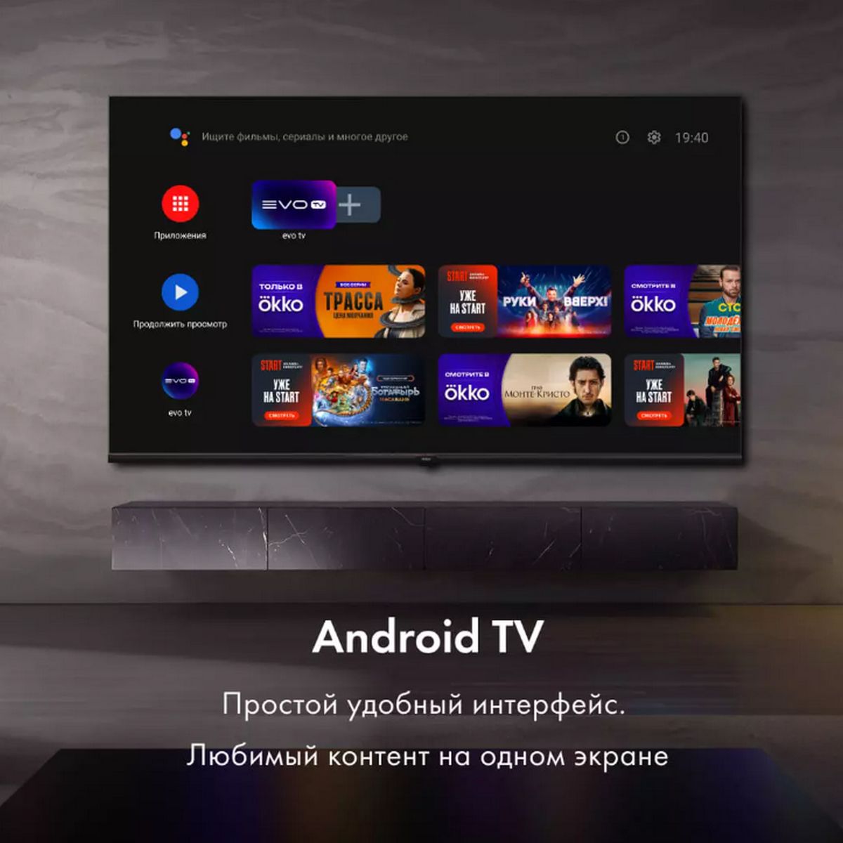 - Android TV — доступ к множеству приложений и сервисов прямо с вашего телевизора.