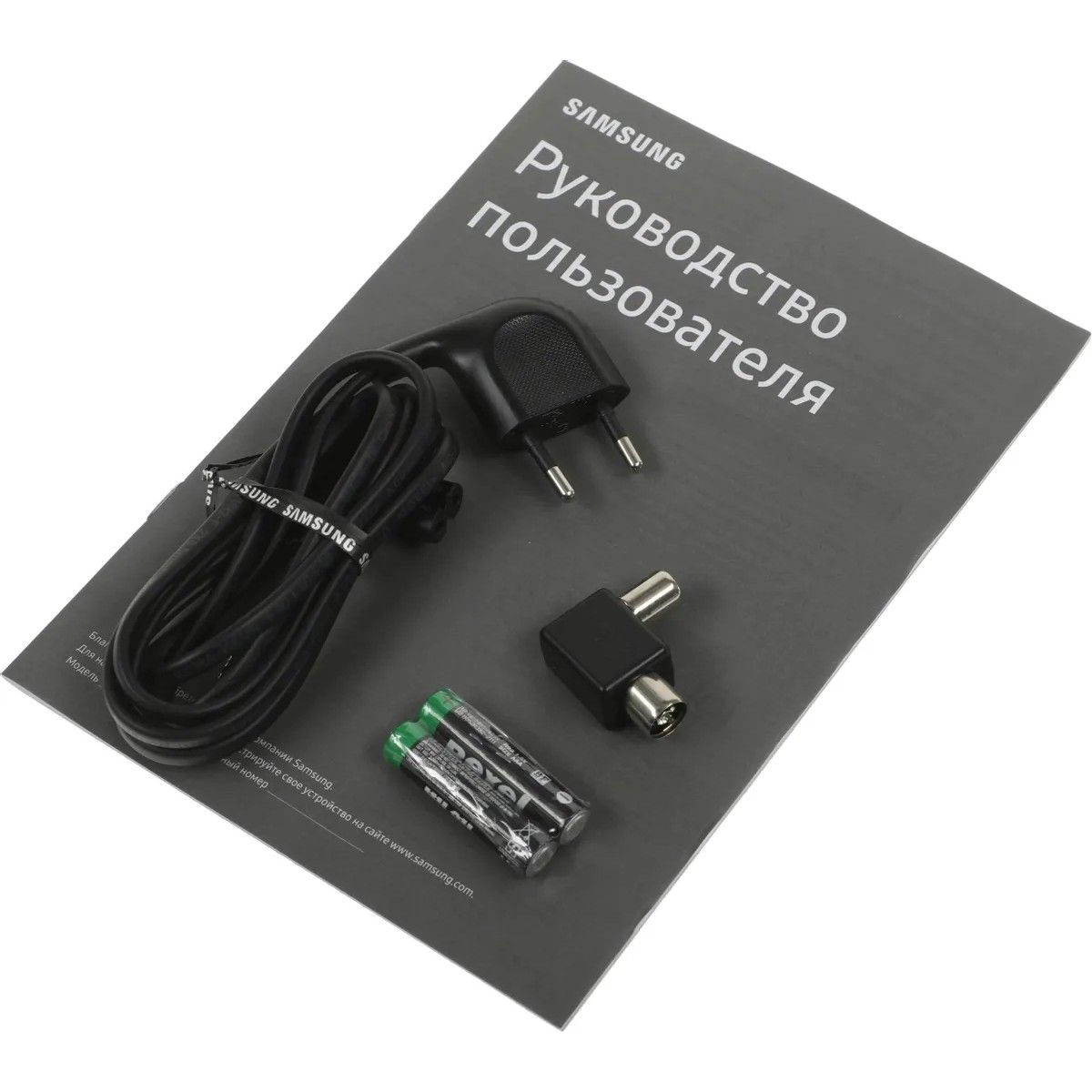 Телевизор, батарейки, документация, пульт ДУ, сетевой кабель