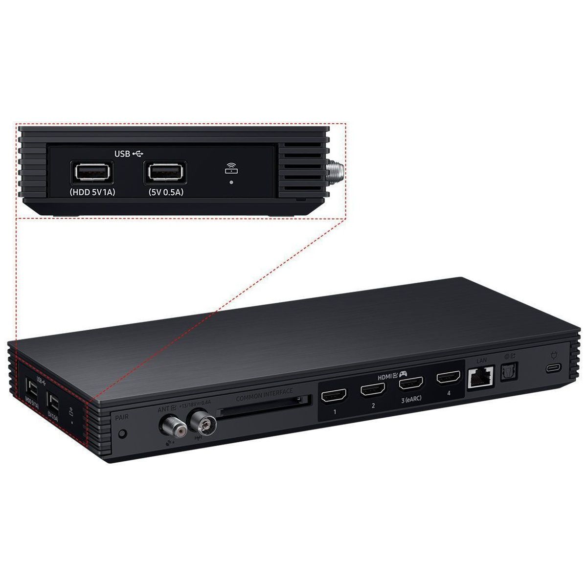 Телевизор, пульт ДУ на солнечных элементах, центральный стенд, беспроводной внешний модуль One Connect, настенный кронштейн Slim Fit, сетевой кабель, документация