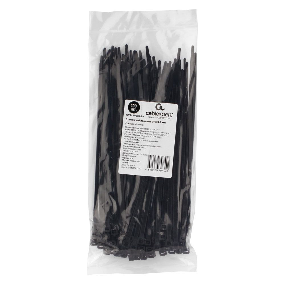 Аксессуары Cablexpert Стяжки NYT-200x4.8В пластиковые 200 мм х 4.8 мм, чёрные (100 шт.) <Одна единица товара - это упаковка из 100 шт.>, RTL {150}