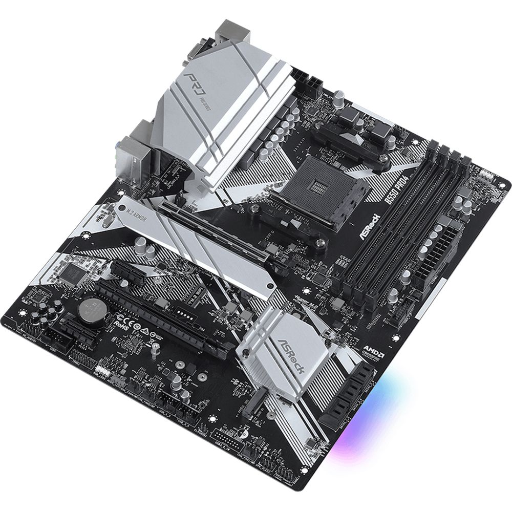 Материнская плата ASRock B550 PRO4 — это надёжное и функциональное решение для сборки игрового или рабочего ПК. Она поддерживает процессоры на сокете AM4 и чипсет AMD B550, что обеспечивает высокую производительность и широкие возможности для апгрейда.