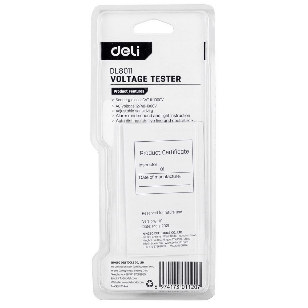 Бесконтактный детектор напряжения Deli DL8011 (12-1000В, батарейки в комплекте)