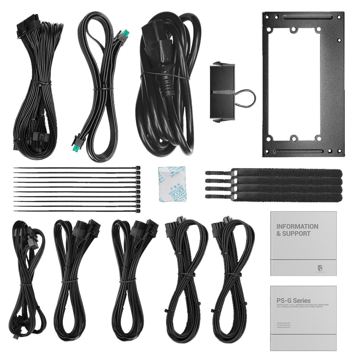 Блок питания, крепежный комплект, комплект кабелей, документация