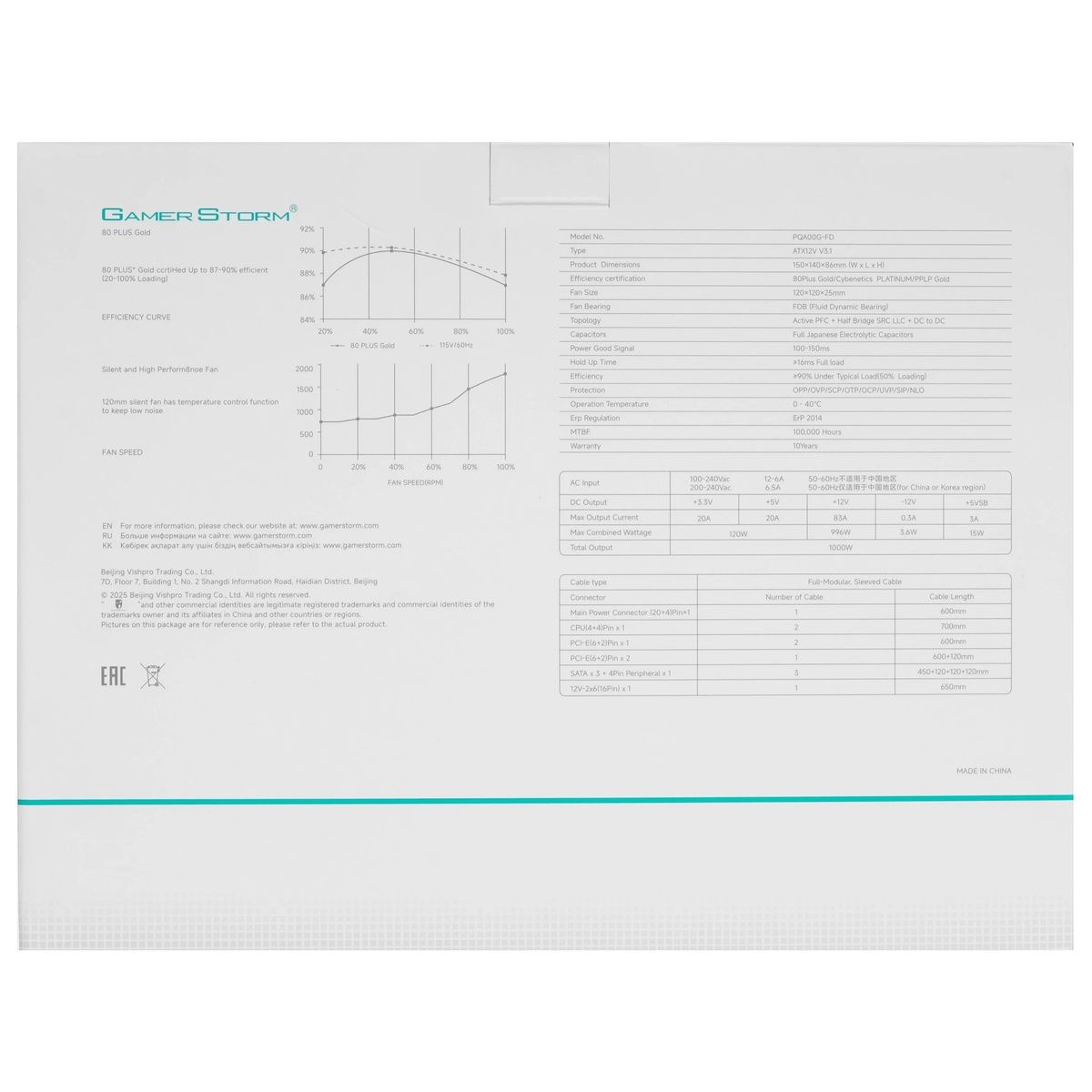 С блоком питания GamerStorm PQ1000G ваш компьютер будет получать стабильное и надёжное питание, что особенно важно во время интенсивных игровых сессий. Инвестируйте в качество и наслаждайтесь безупречной работой вашего ПК!