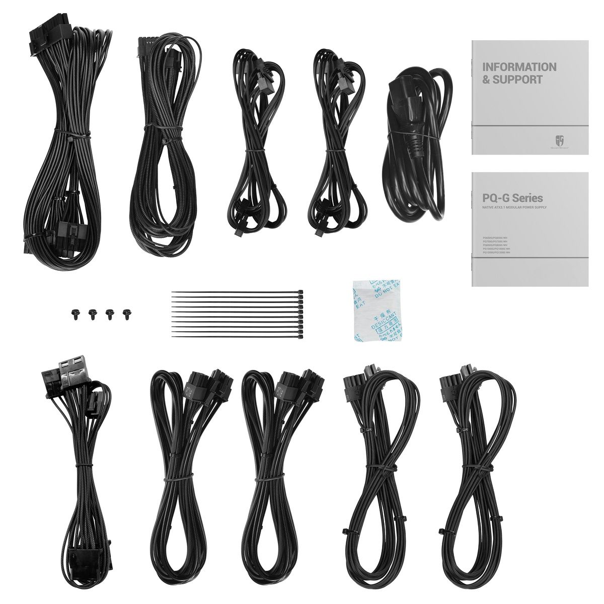 Блок питания, документация, кабельные стяжки, комплект кабелей