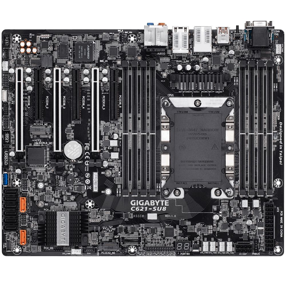 Материнская плата Gigabyte C621-SU8 Intel C621 motherboard with LGA 3647 Socket P, 6-Channel DDR4 RDIMM/LRDIMM 8 x DIMMs, Aspeed® AST2500 BMC, Dual M.2, Dual Intel® Server GbE LAN, 3 PCIe x16 slots and 3 PCIe x8 slots for multi cards RTL {6}
