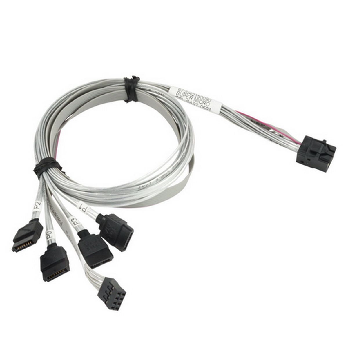Внутренний интерфейсный кабель Reverse Breakout Cross-Over MiniSAS HD-to-4SATA с разъемом Sideband