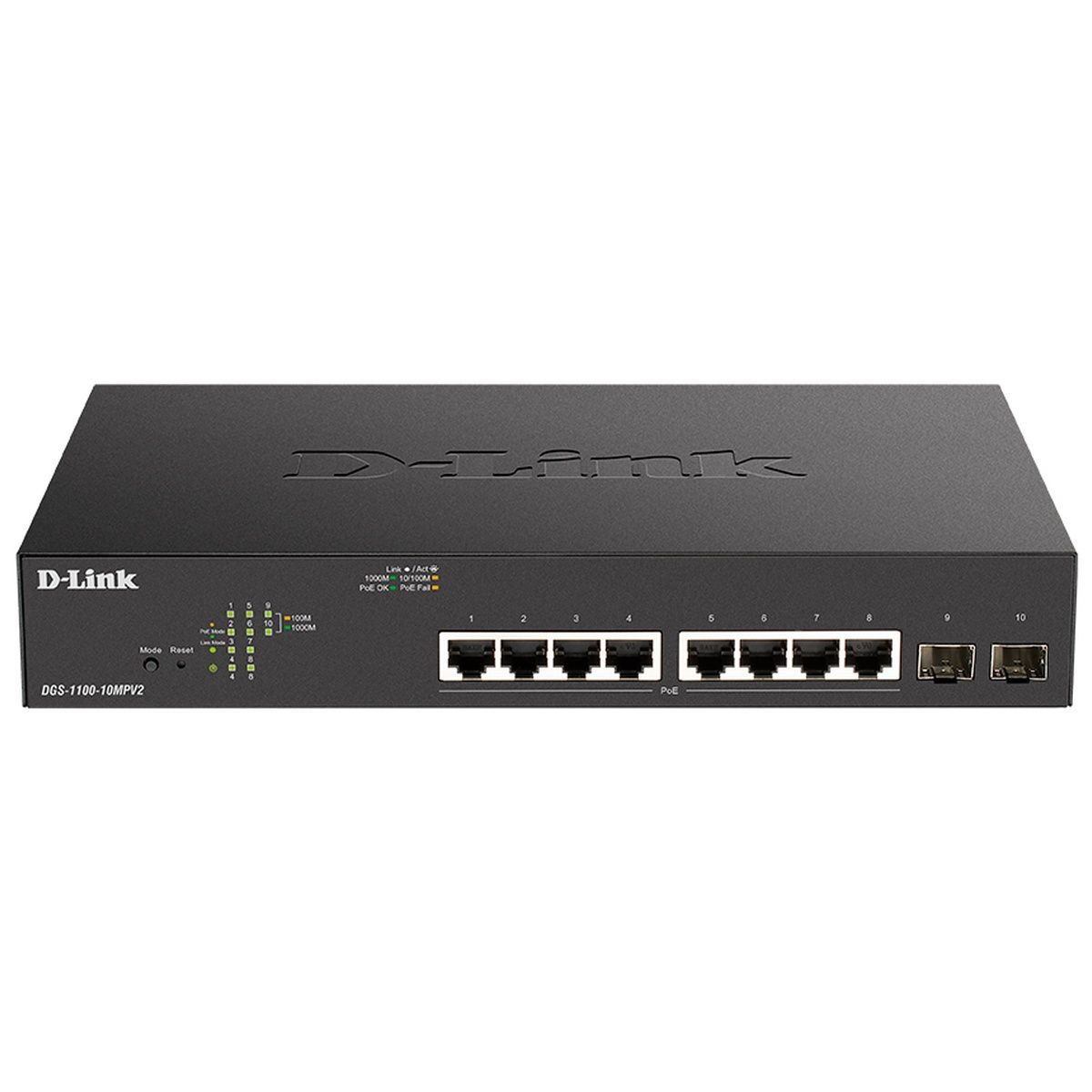 Коммутатор D-Link DGS-1100-10MPV2/A3A Настраиваемый L2 коммутатор с 8 портами 10/100/1000Base-T и 2 портами 1000Base-X SFP (8 портов PoE 802.3af/at, PoE-бюджет 130 Вт)