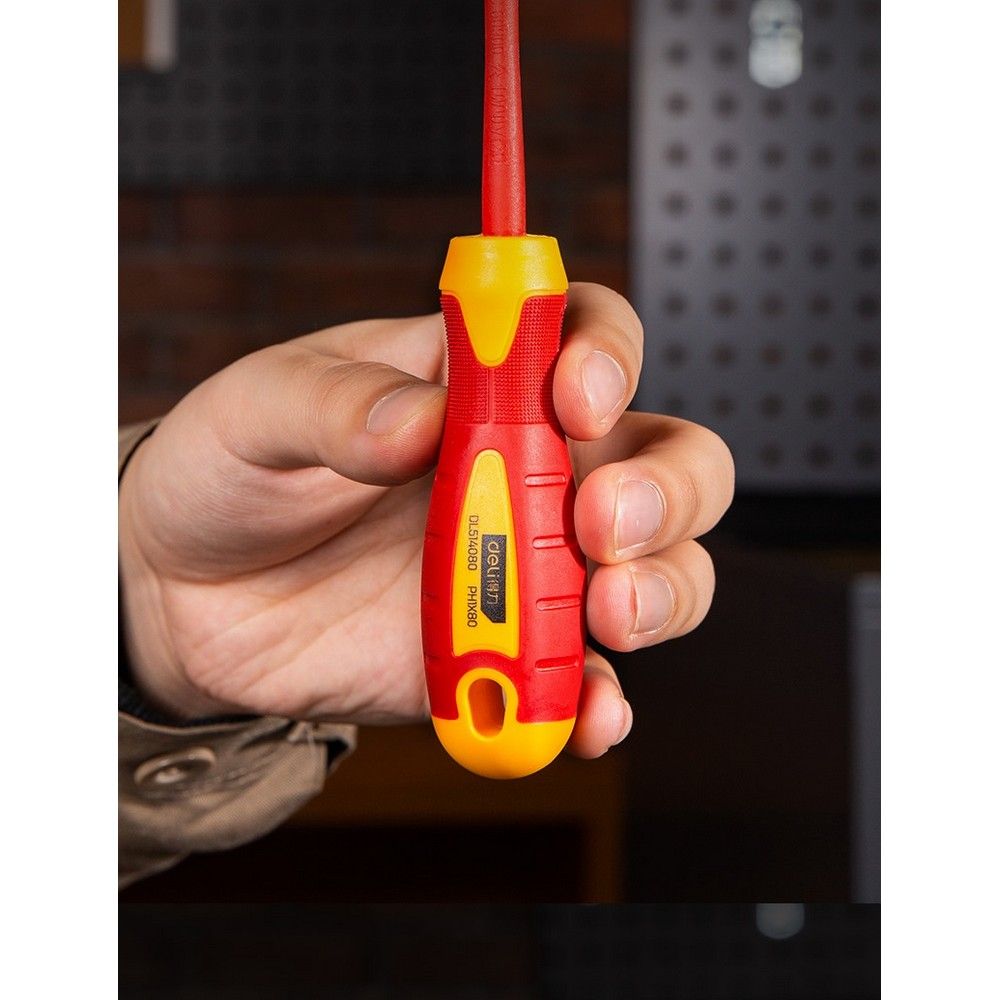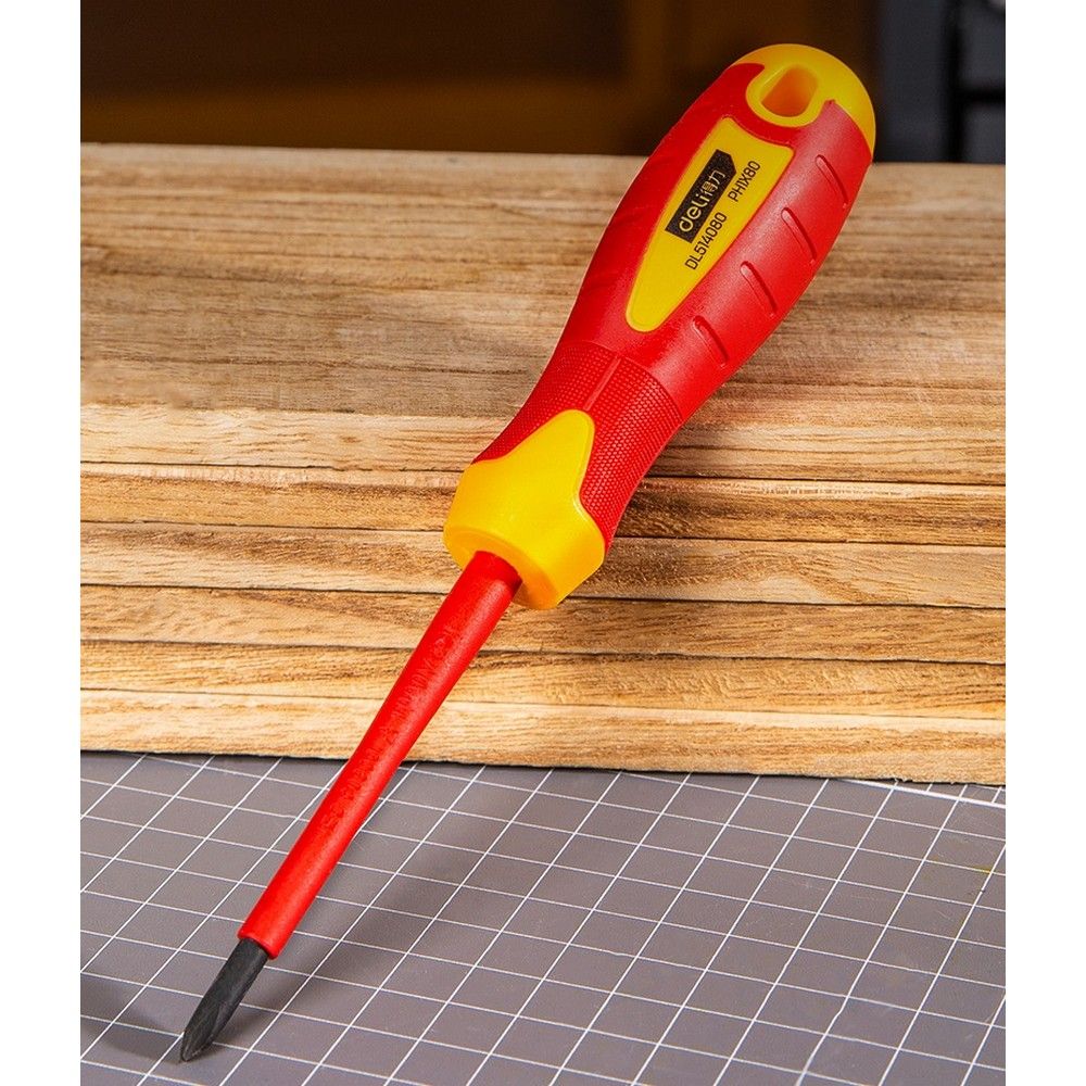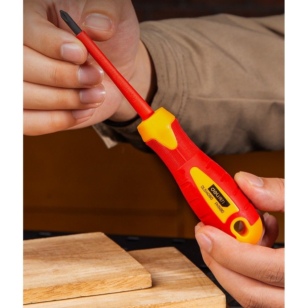 Название товара: Диэлектрическая крестовая отвёртка Deli DL514080 PH1х80 мм.
