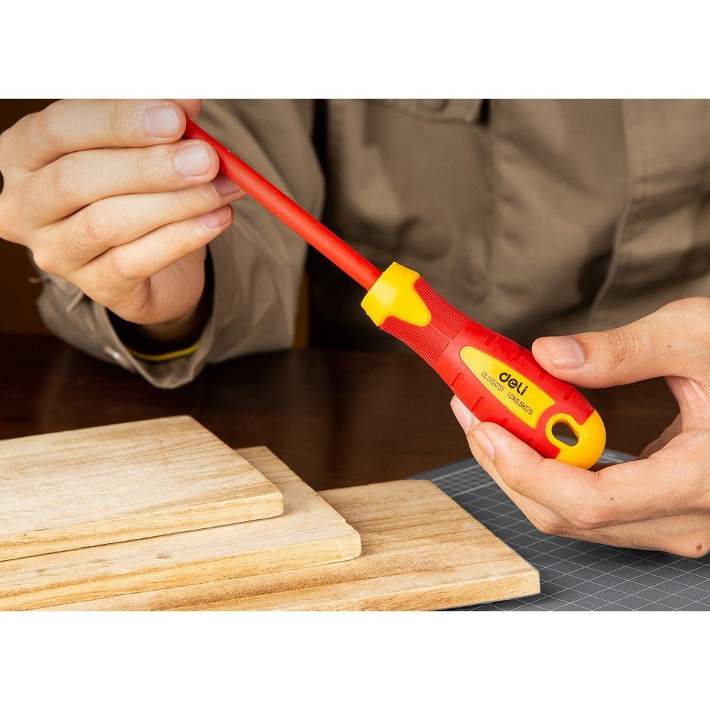 Диэлектрическая отвёртка Deli станет надёжным помощником в работе с электрическими устройствами.