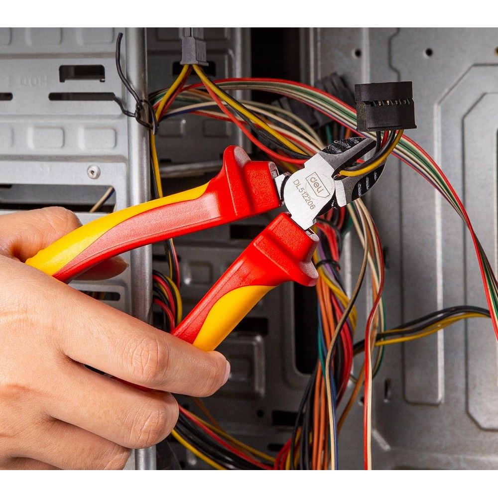 Шарнирно-губцевый инструмент Deli. Диэлектрические диагональные бокорезы Deli DL512206 160 мм