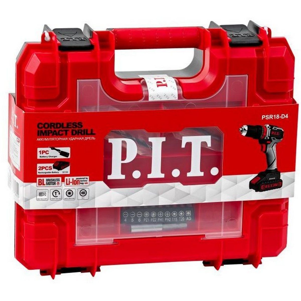 Дрель аккумуляторная бесщеточная P.I.T PSR18-D4 (20В, 2 Li акк 1,5 Ач, 40Нм, ударн, фикс. шпинделя, кейс)