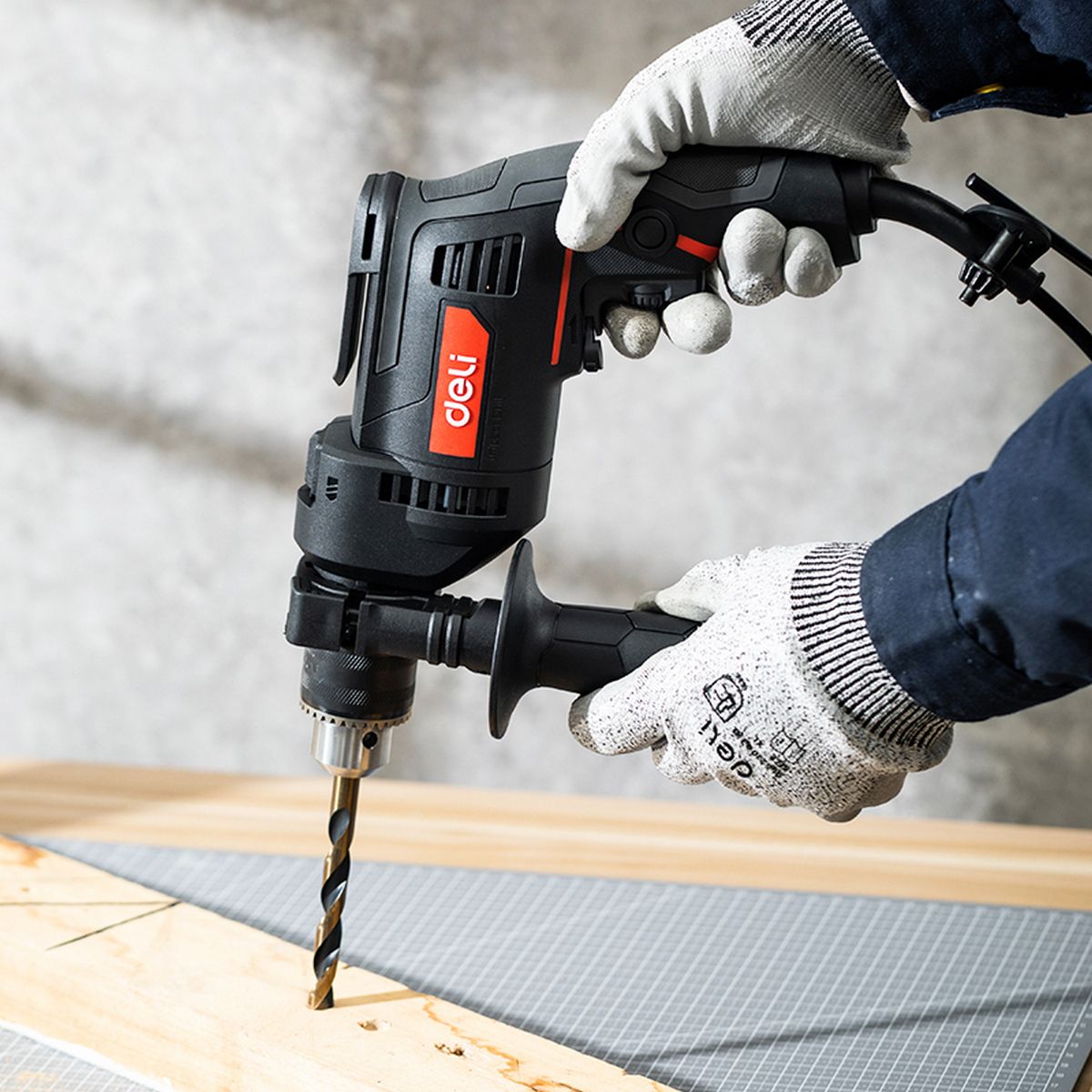 Дрель-шуруповерт сетевая Deli DE-CZ13-1E (680Вт, 13мм, 3000об/мин, 48000уд/мин, картон)