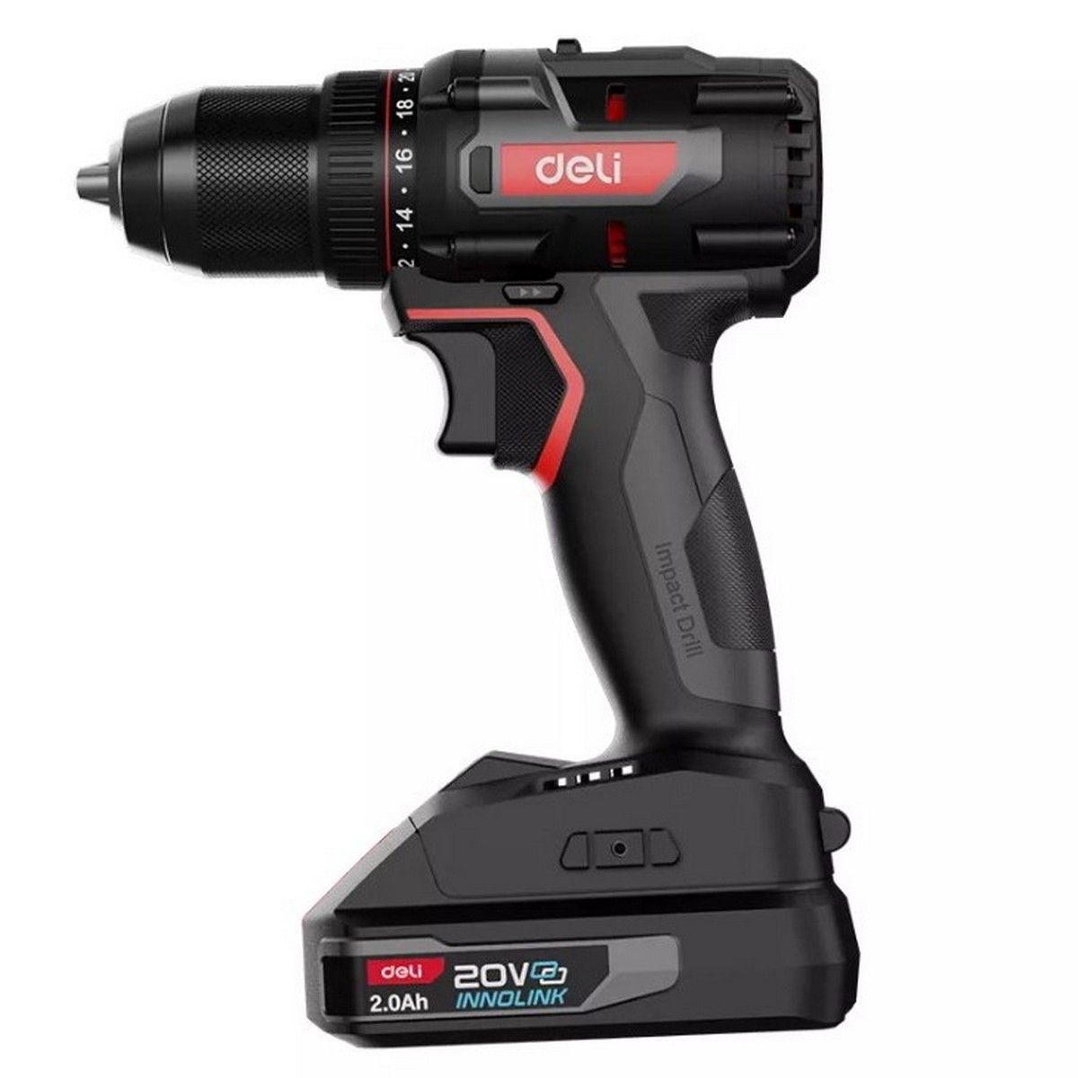 Дрель-шуруповерт аккумуляторная DeliDE-DZ20-2D2 (2 АКБ*2Ач+ЗУ, 20В, 13мм, 70Нм, сумка)