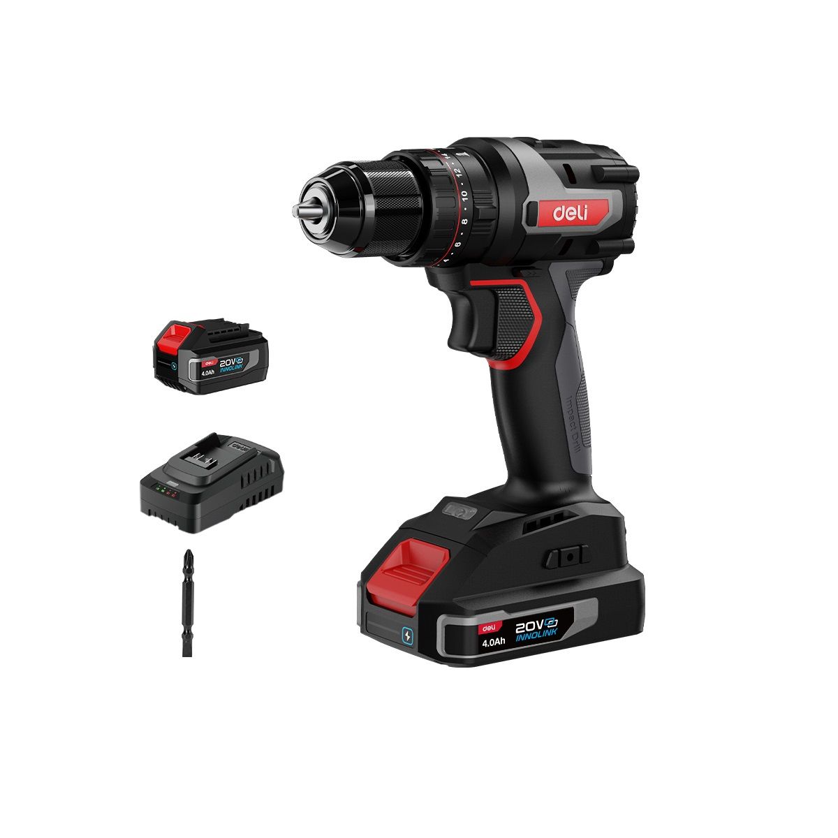Дрель-шуруповерт аккумуляторная ударная Deli DE-CZ20-2A4 (1 АКБ*4Ач+ЗУ, 20В, 10мм, 50Нм, сумка)