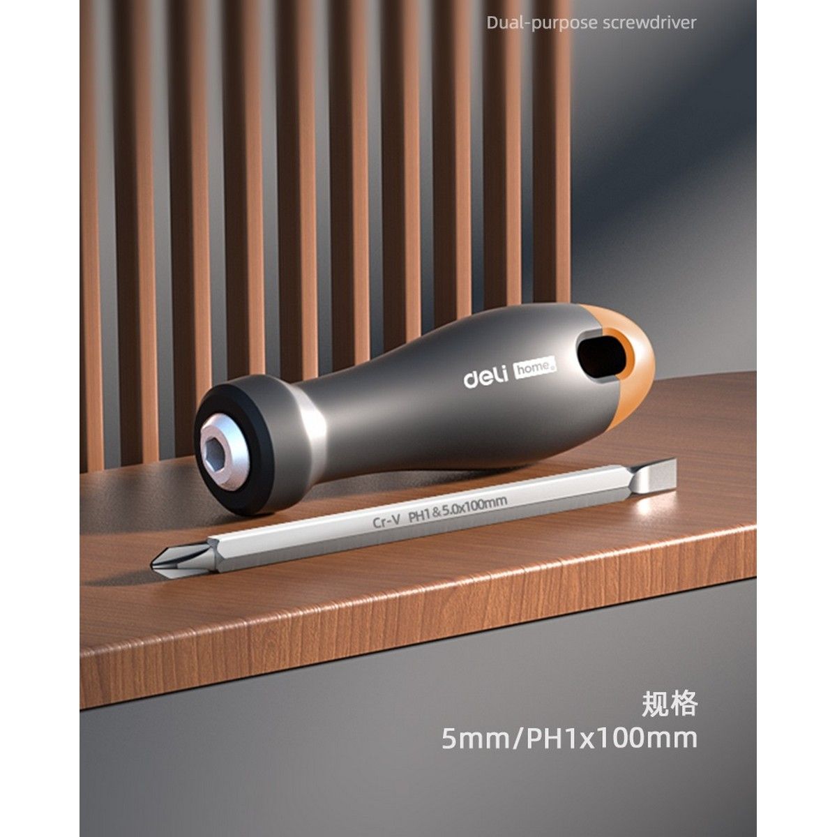 Двухсторонняя отвёртка Deli HT1055C SL5+PH1 из серии Home Series Gray