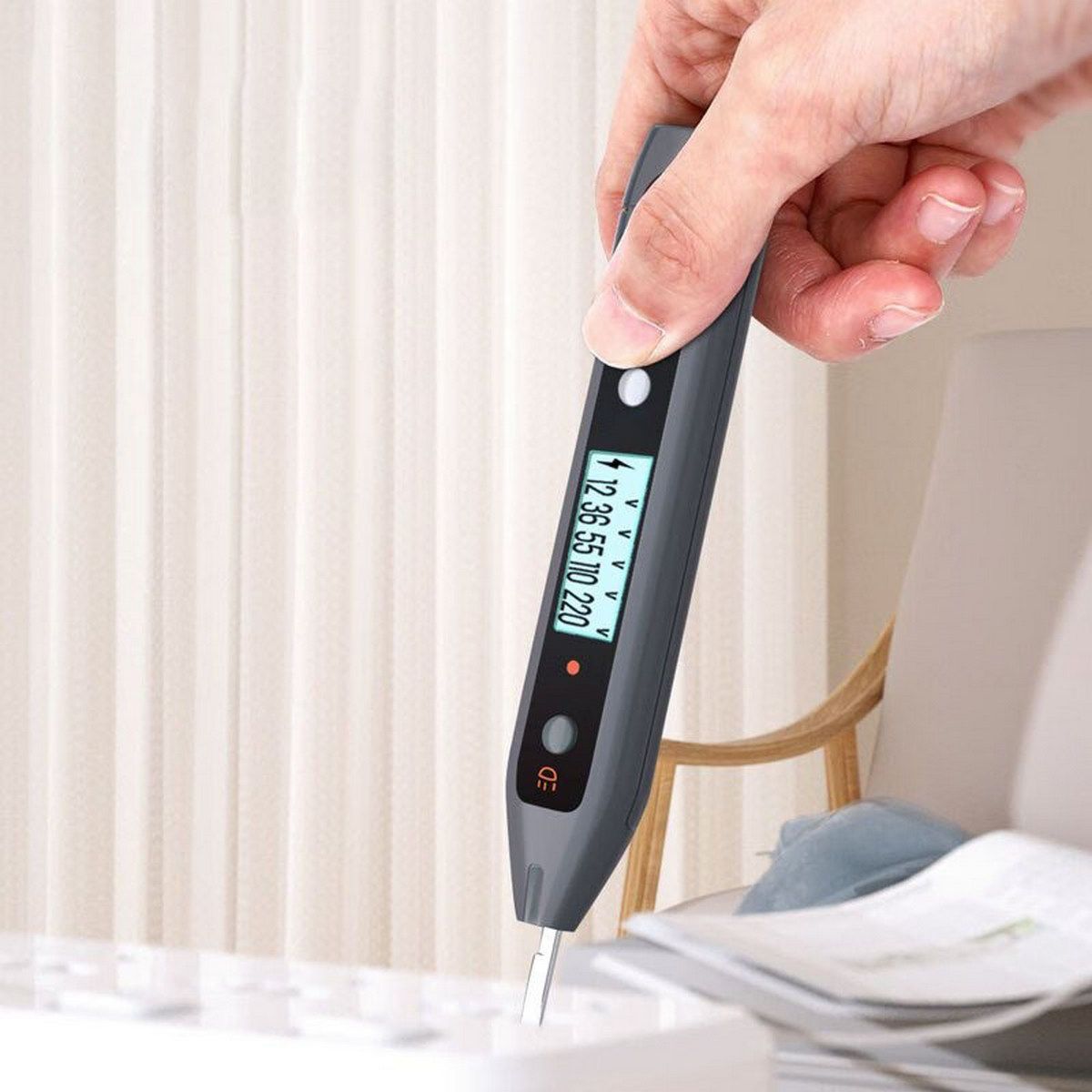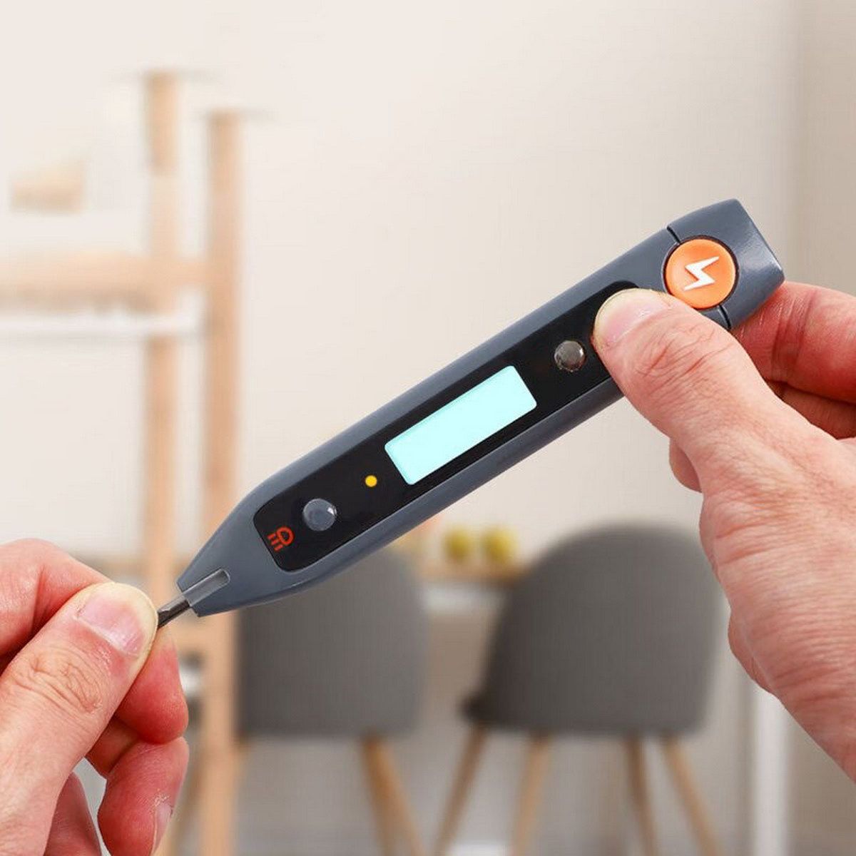 Индикаторная отвертка-тестер напряжения цифровая "Home Series Gray" Deli HT7005 (12-250 В, фонарик, батарейки в комплекте)