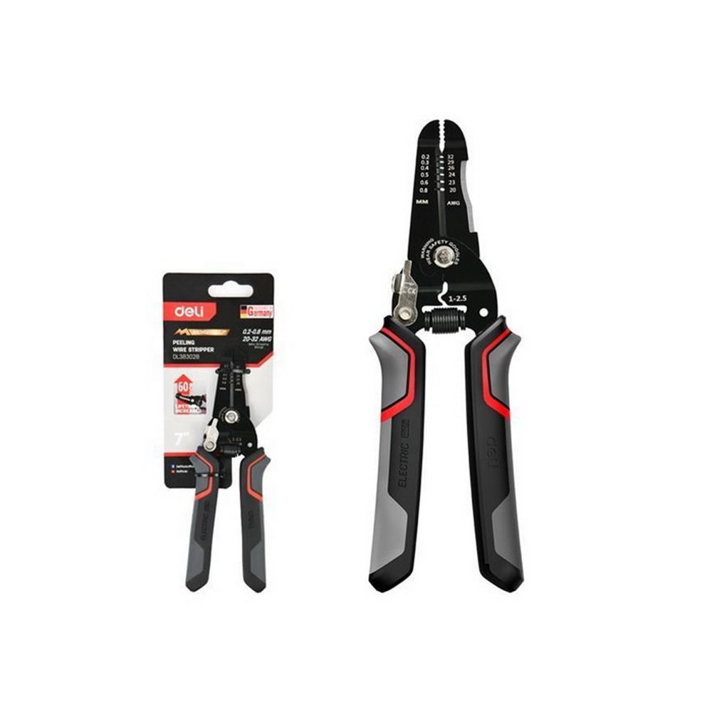 Инструмент для зачистки проводов (стриппер) DL383028 диапазон зачистки 0,2-0,8 мм, нержавеющая сталь, пружина с автоматическим возвратом, прорезиненные рукоятки