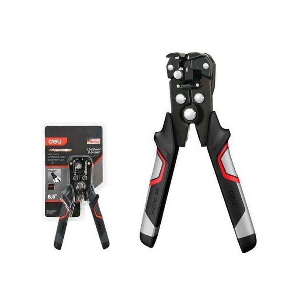 Инструмент обжимной Deli многофункциональный для зачистки проводов (стриппер) 2-в-1 Deli DL2015 165мм, зачистка+резка, сечение кабеля 0,6-6кв.мм, цинковый сплав, лезвие CrMoV, прорезиненные рукоятки