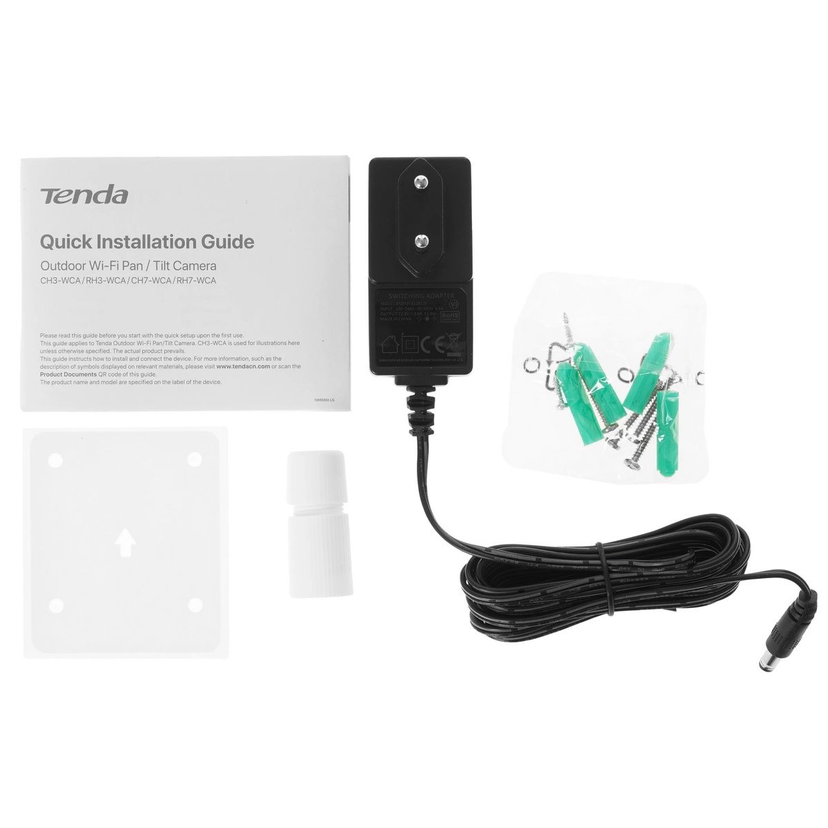 IP-камера Tenda CH3 Уличная поворотная IP-камера, 1920x1080 15 кадр./сек, 355° по горизонтали, 90° по вертикали, Wi-Fi, ночная съемка до 30м, датчик движения, IP65, от -30° до 60° C, sd-карта 128GB, 2 внешние антенны, белый