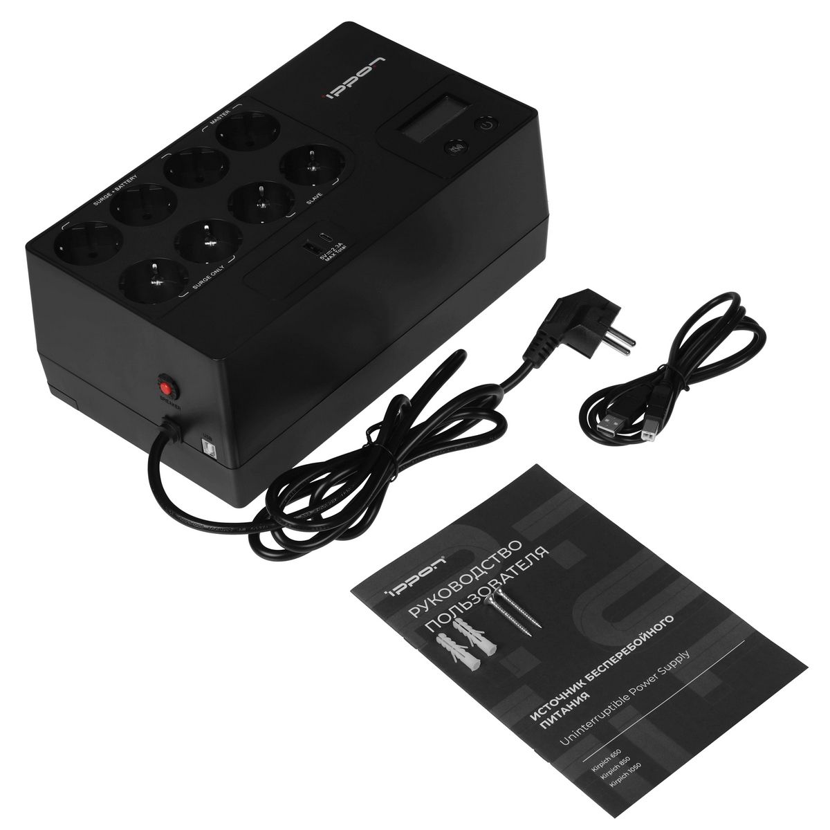 ИБП, документация, 2 дюбель-шурупа.