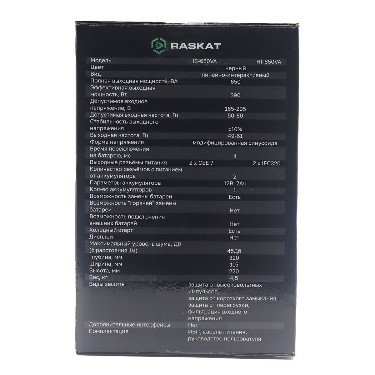Источник бесперебойного питания (ИБП) Raskat HI-650VA 650VA, 390Вт, 4хIEC320