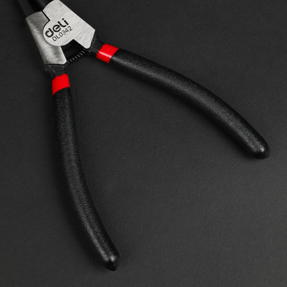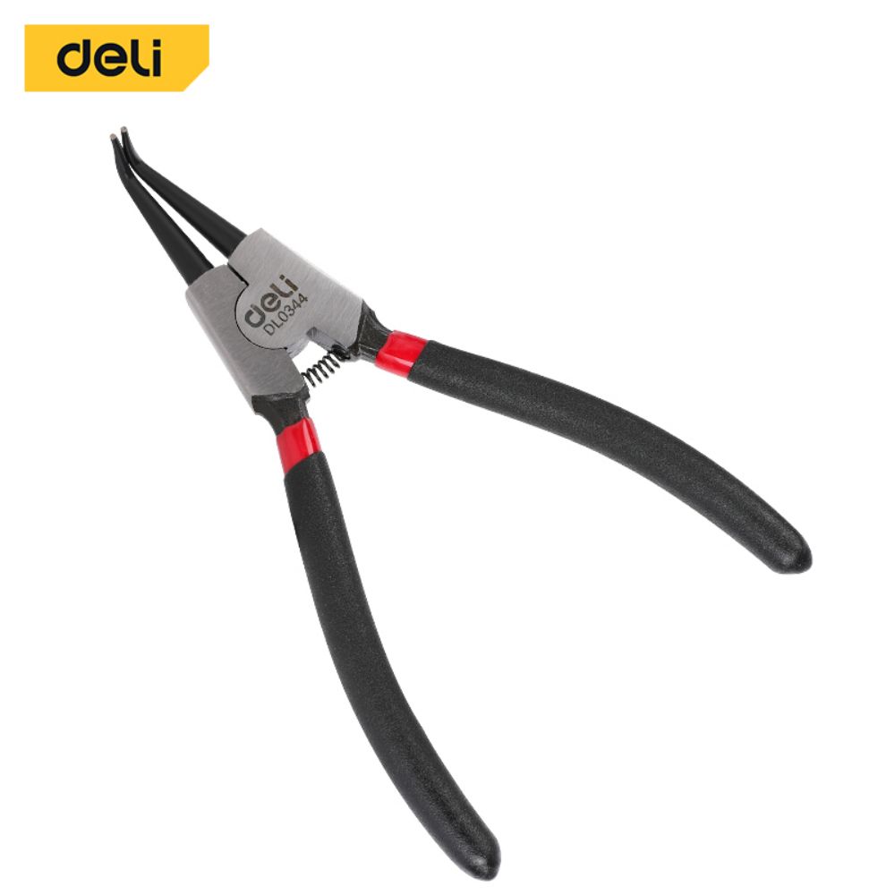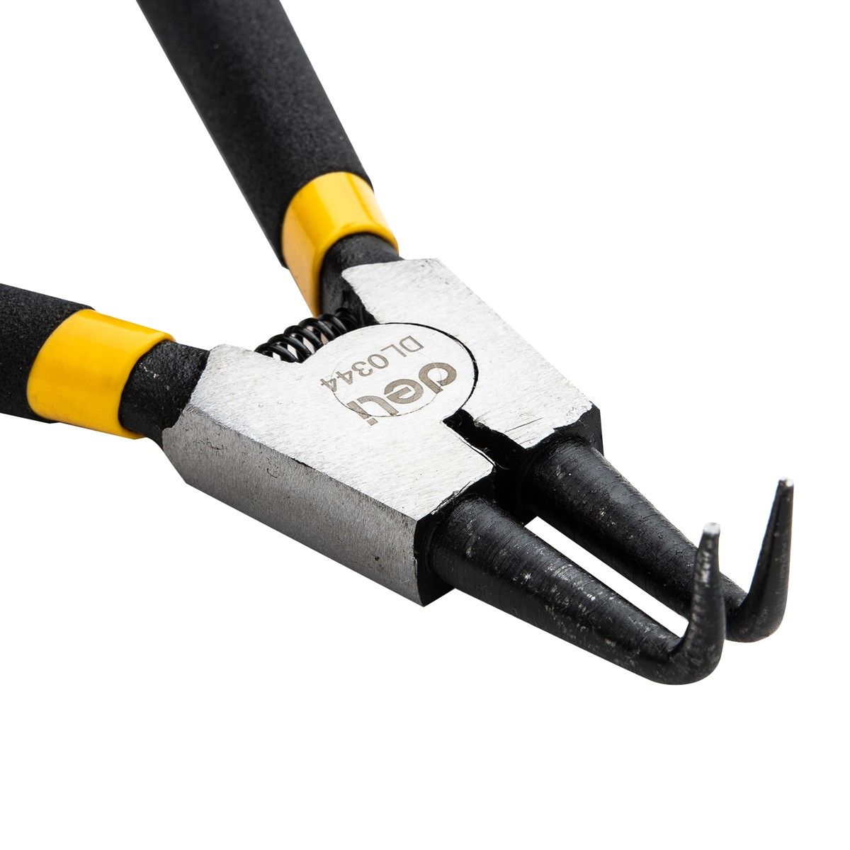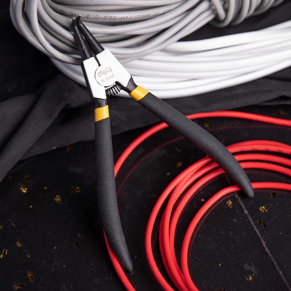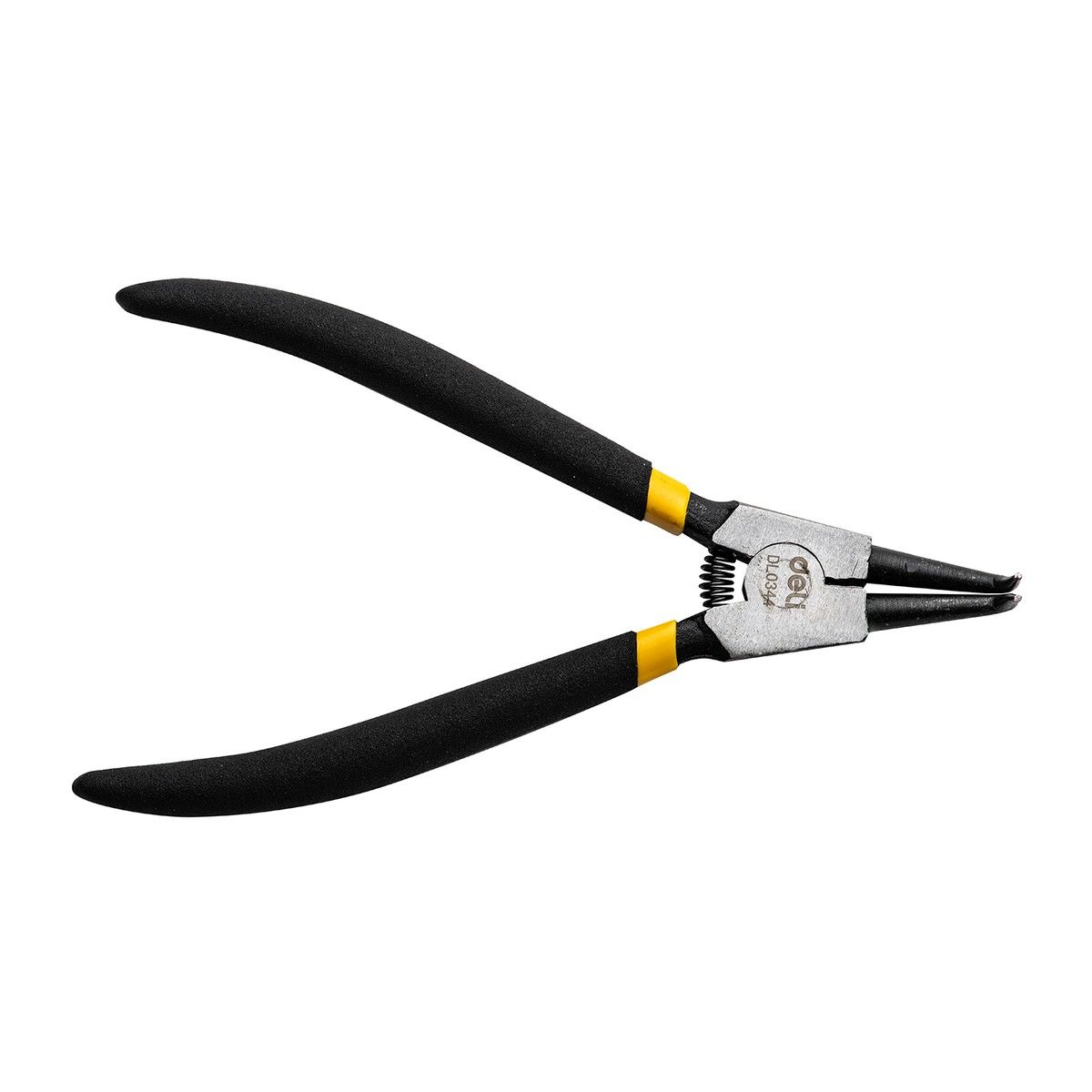 Изогнутый съемник внешних стопорных колец Deli DL0344 175мм, сталь HRC50-54, прорезиненная рукоять