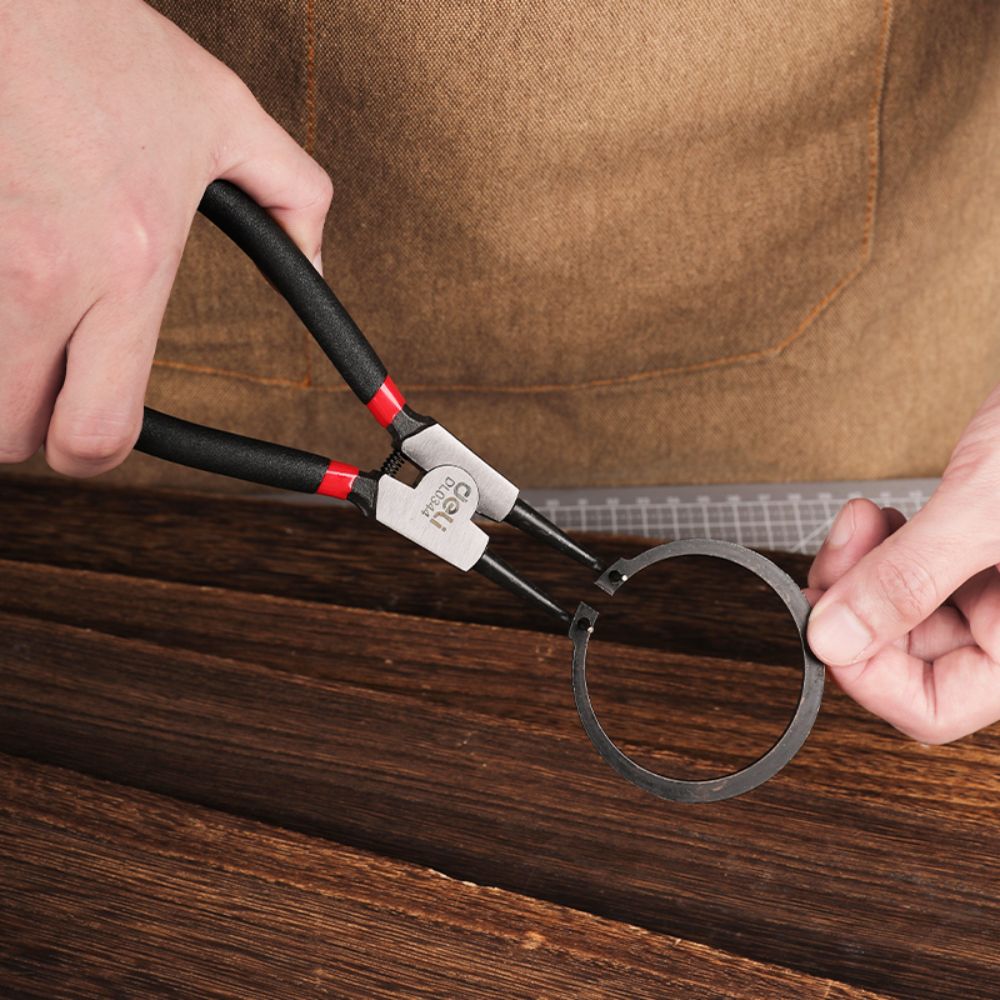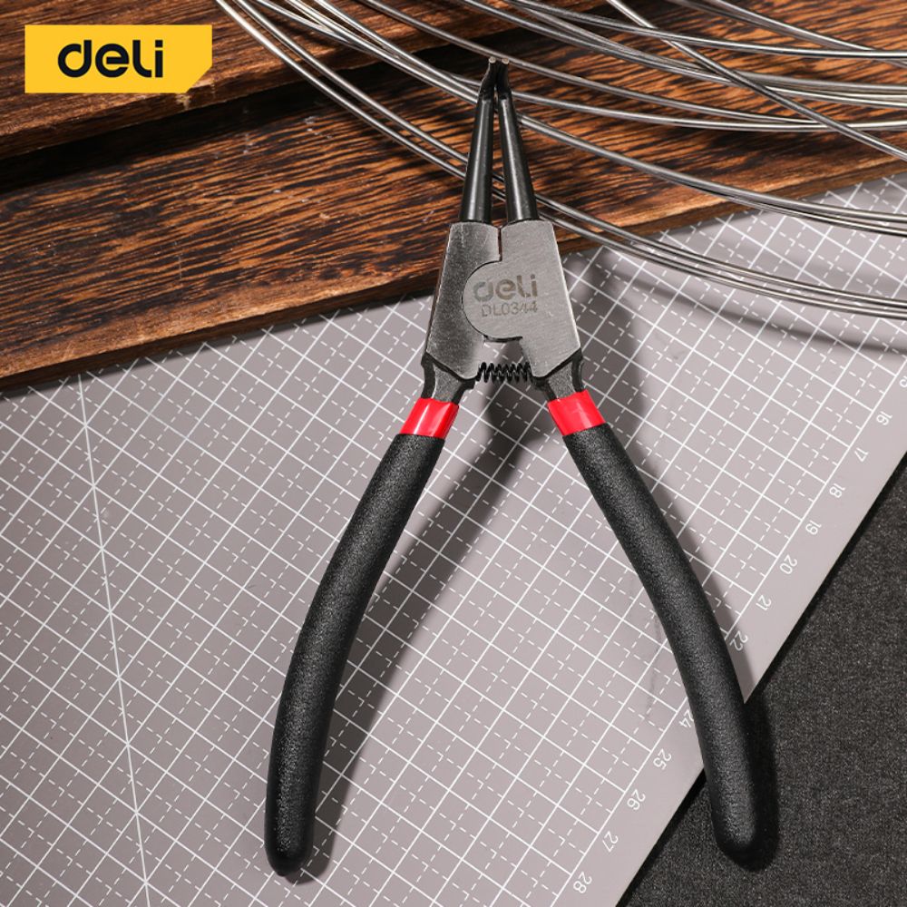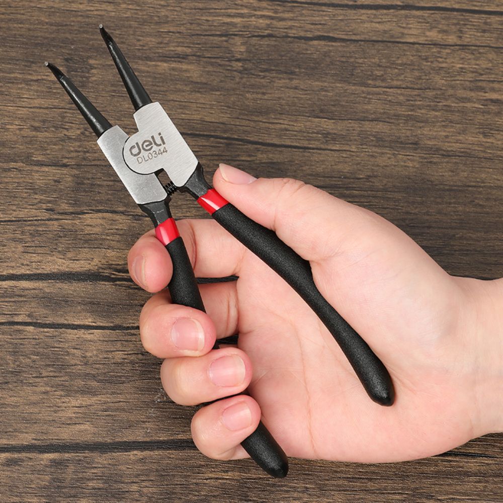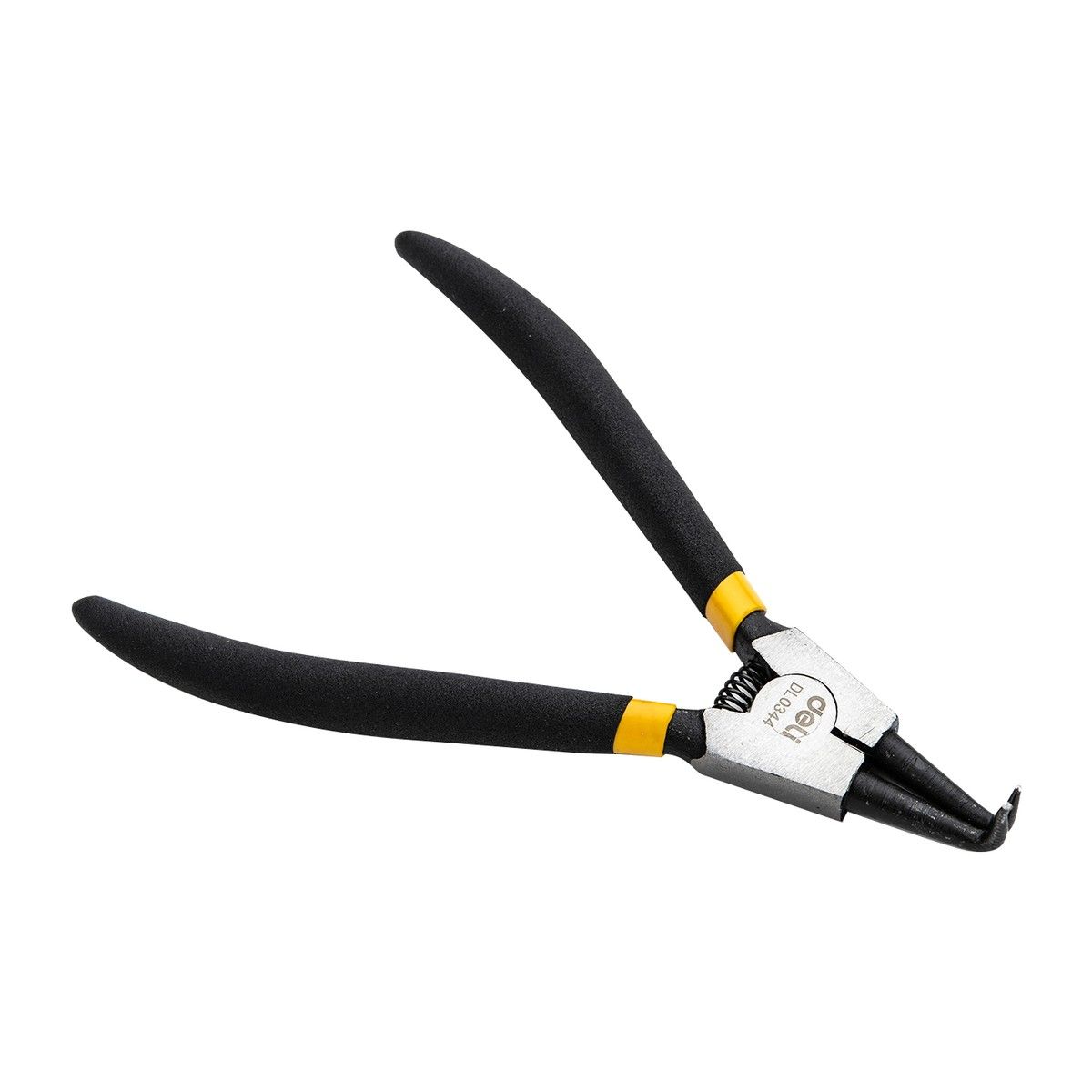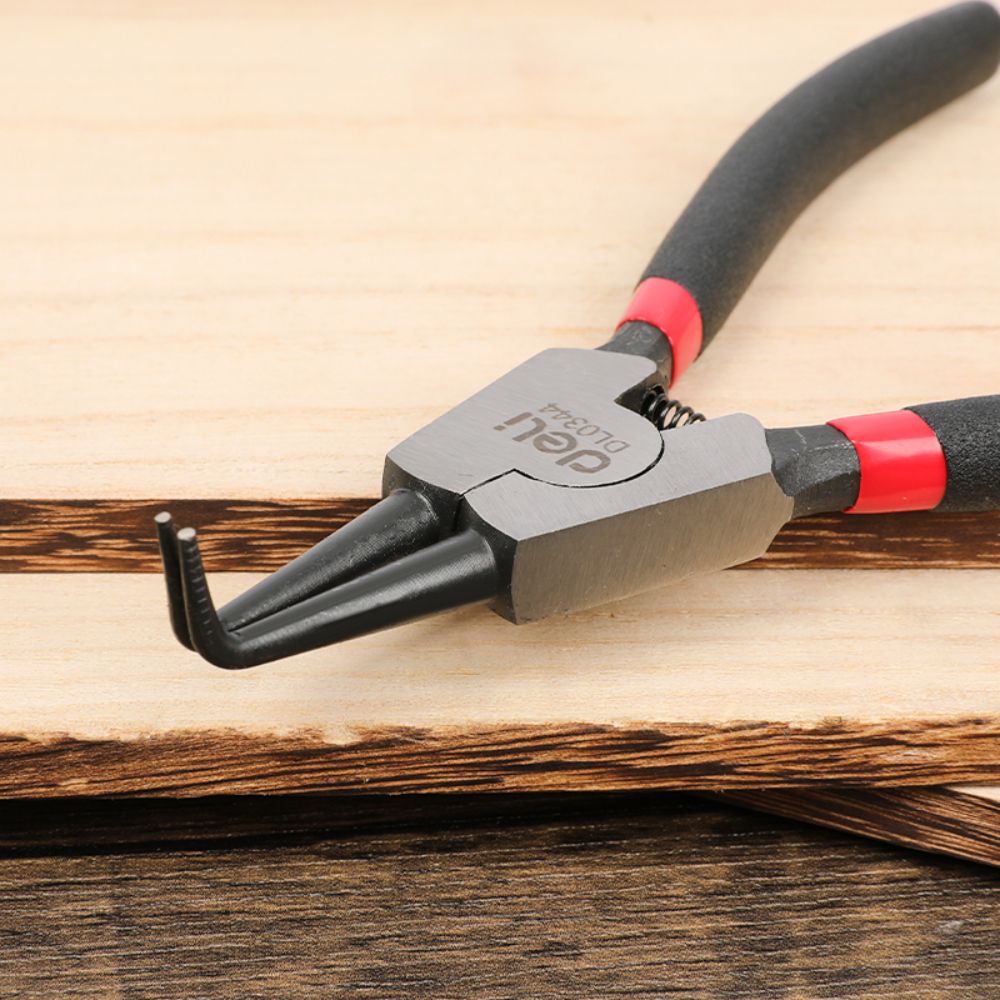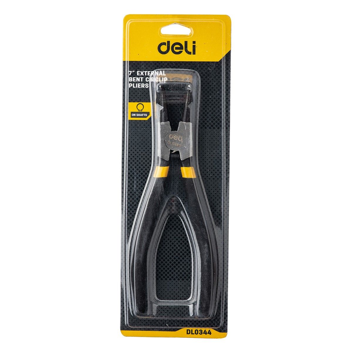 Изогнутый съемник внешних стопорных колец Deli DL0344 175мм, сталь HRC50-54, прорезиненная рукоять