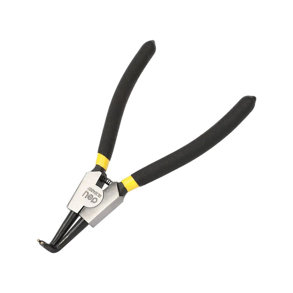 Изогнутый съемник внешних стопорных колец Deli DL104307 175мм, углеродистая сталь 55#, прорезиненная рукоять