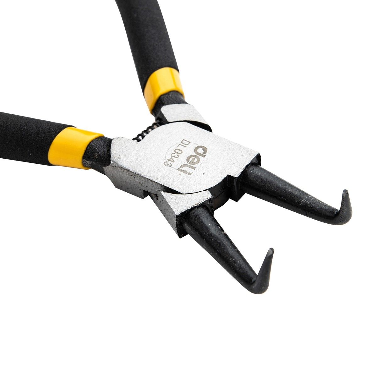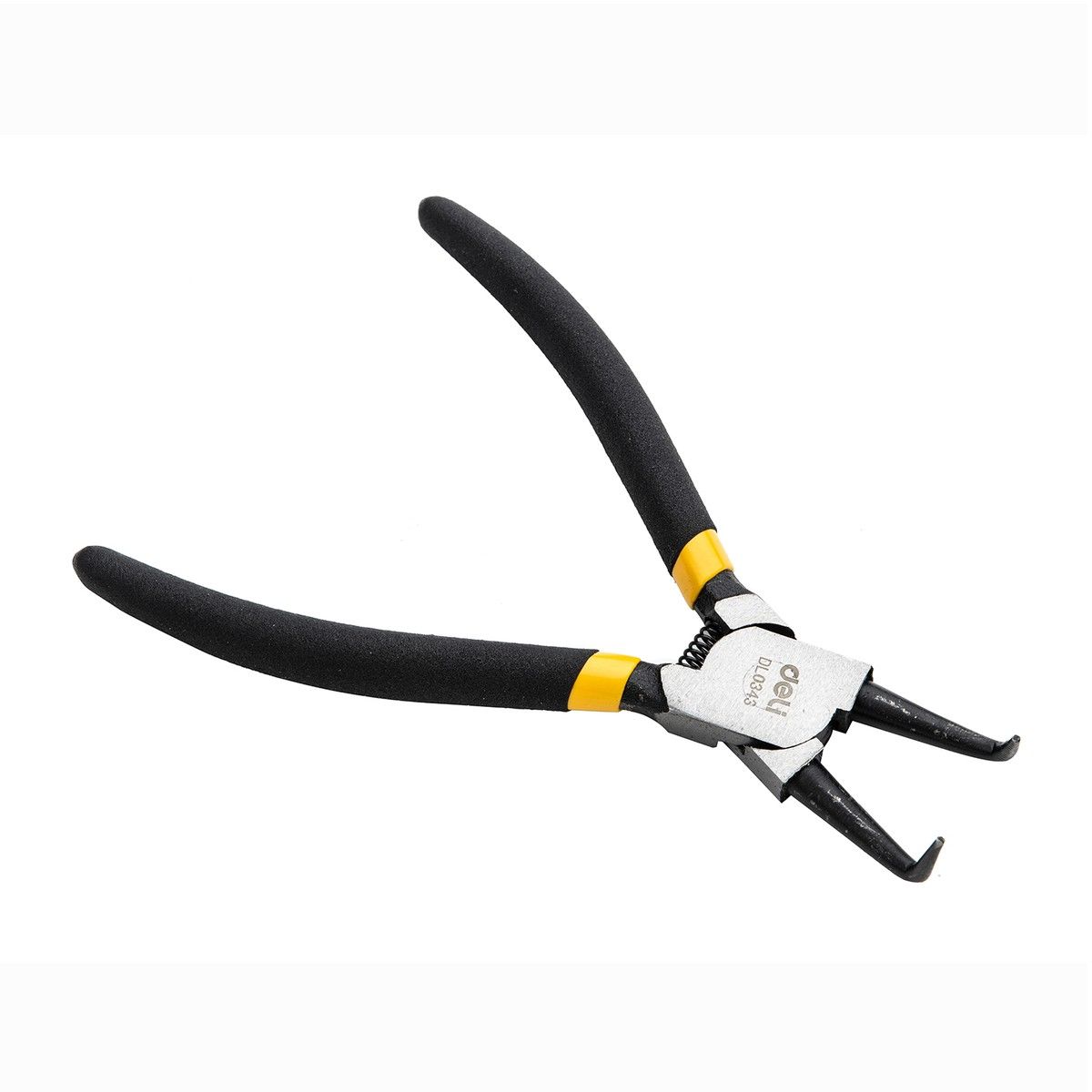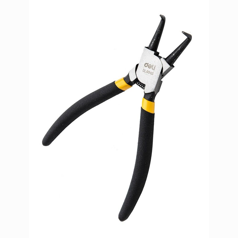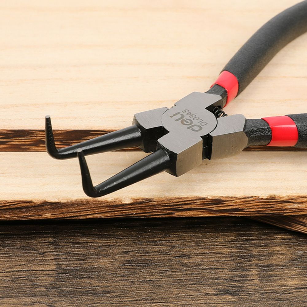 Изогнутый съемник внутренних стопорных колец Deli DL0343 175мм, сталь HRC50-54, прорезиненная рукоять