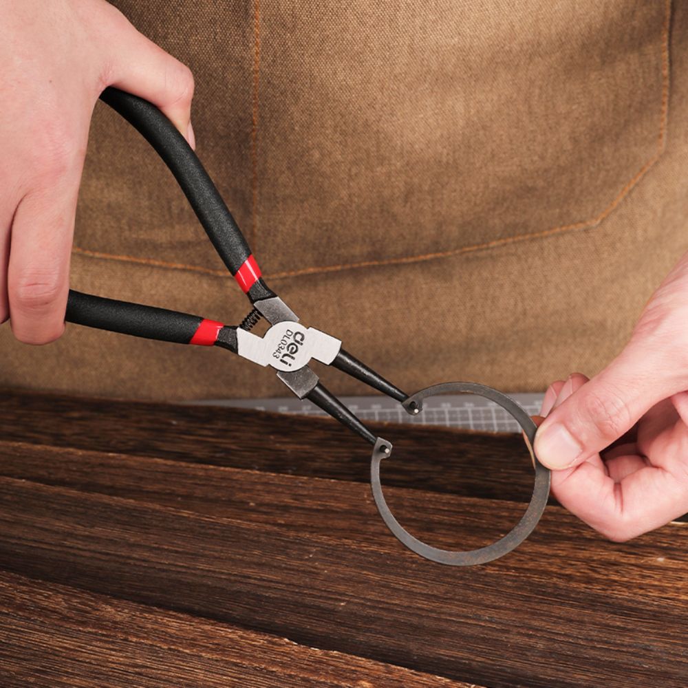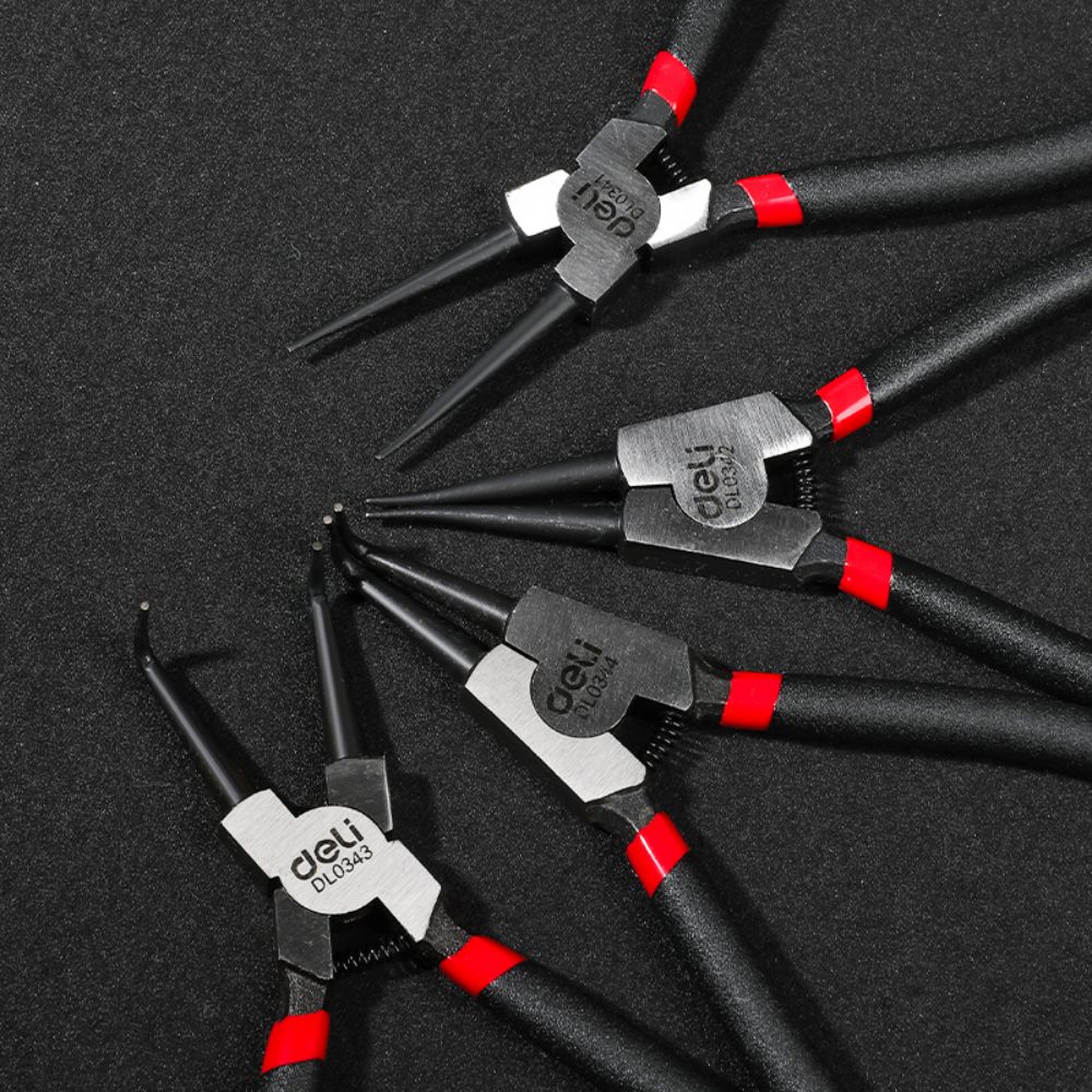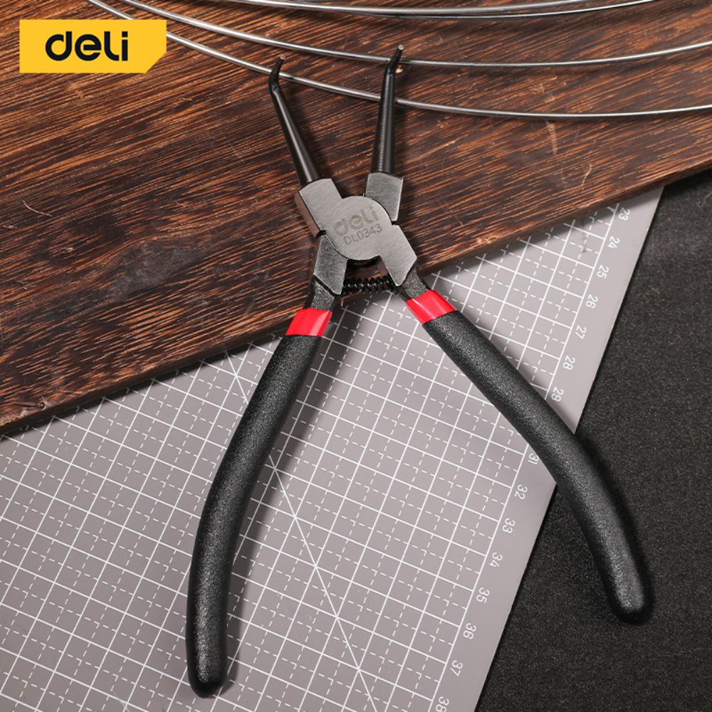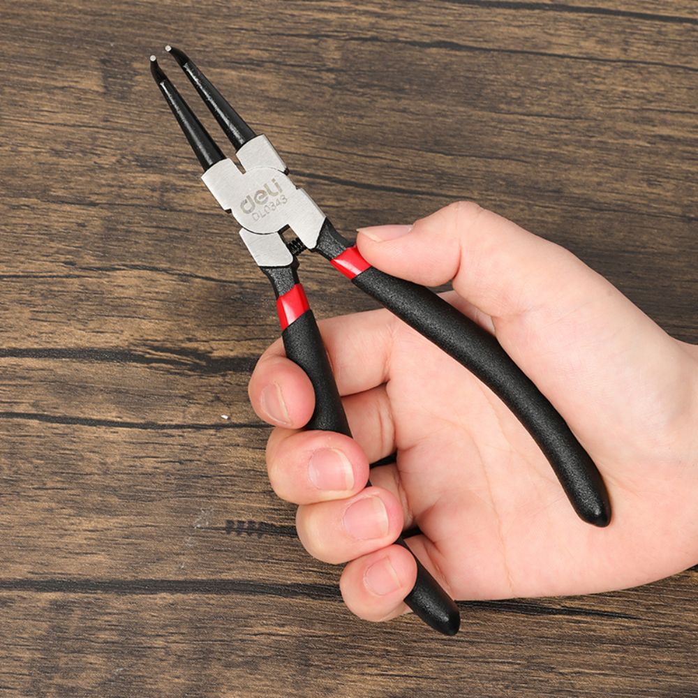 Изогнутый съемник внутренних стопорных колец Deli DL0343 175мм, сталь HRC50-54, прорезиненная рукоять