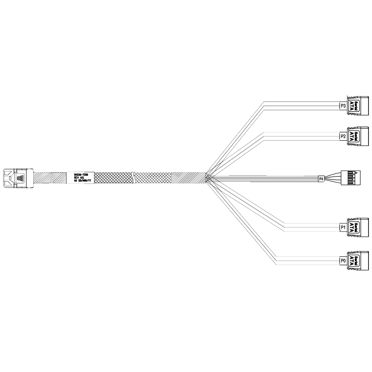 Кабель Amphenol RHS36-7350 Кабель HDmSAS SFF8643 -to- 4*SATA + Sideband, SAS 2.1 (6G), 100cm