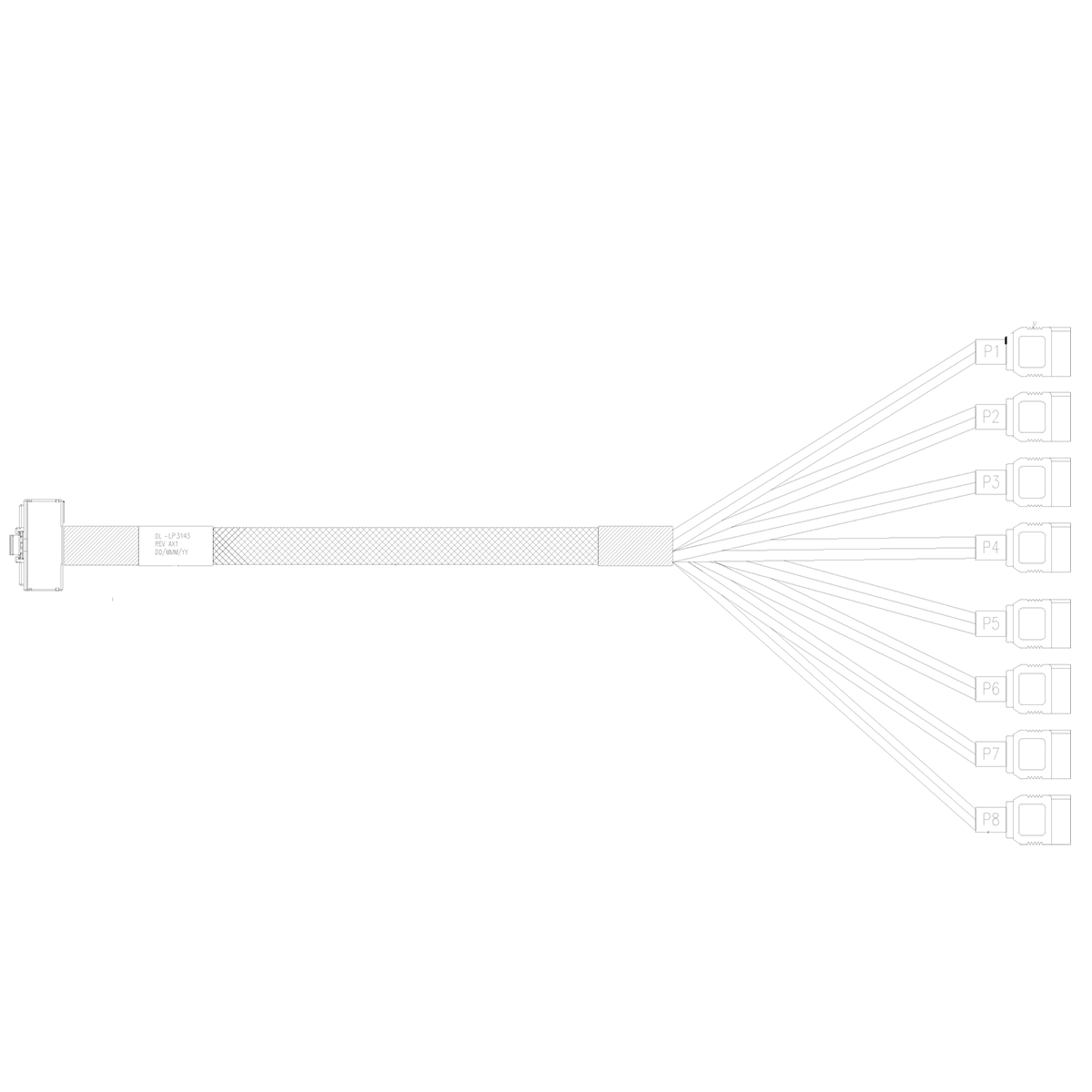 Кабель DiliVing DL-LP3143 Slimline LP x8 (SFF8654LP угловой) -to- 8 SATA (металл.защелки) , 100 Ohm, SAS3.0, 80CM