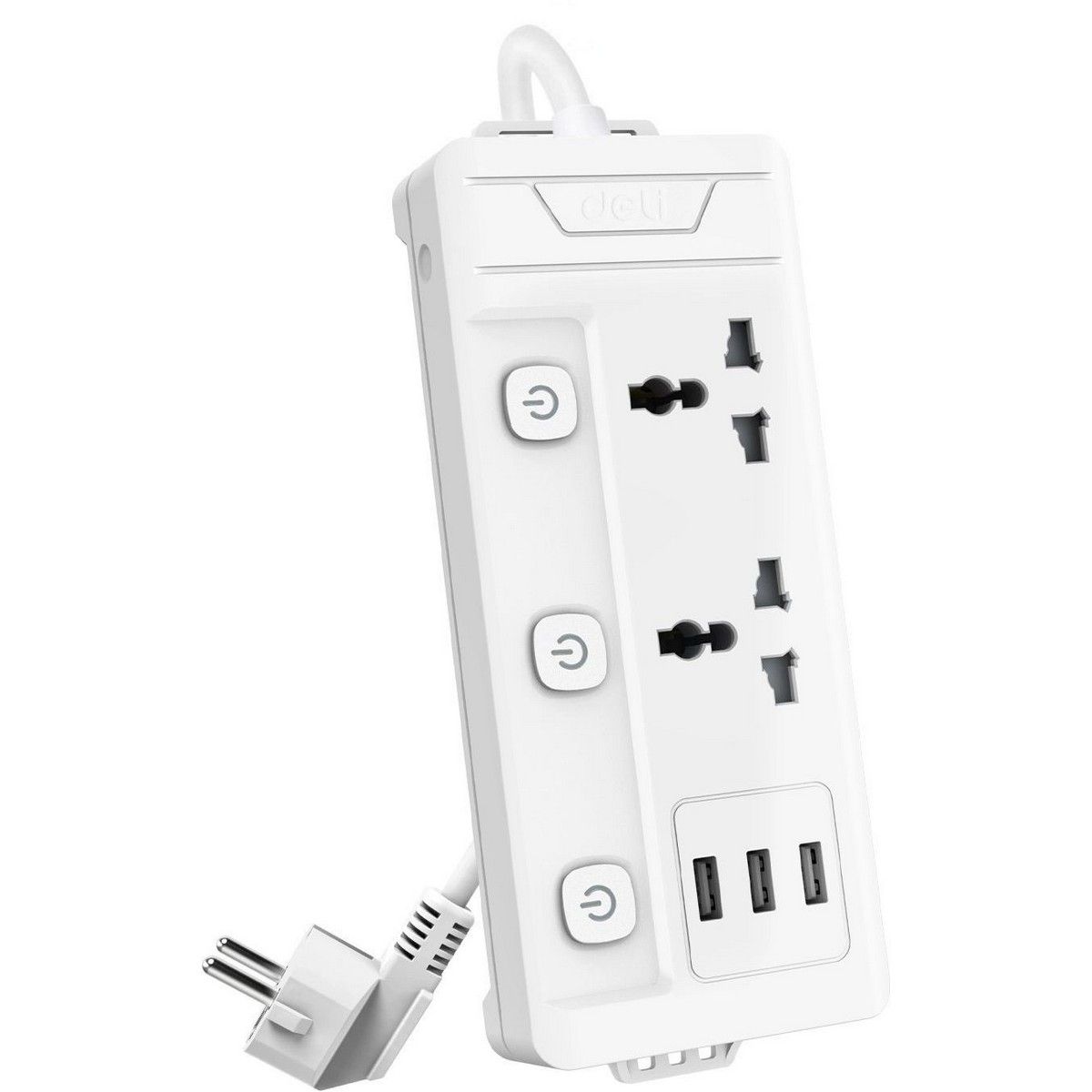 Сетевой фильтр универсальный Deli ET409 / 2розетки + 3USB , 2 м
