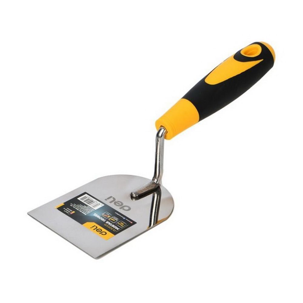 Кельма (мастерок) Deli DL509326 нержавеющая сталь, рабочая часть 100х120мм, форма "лопатка", прорезиненная рукоятка