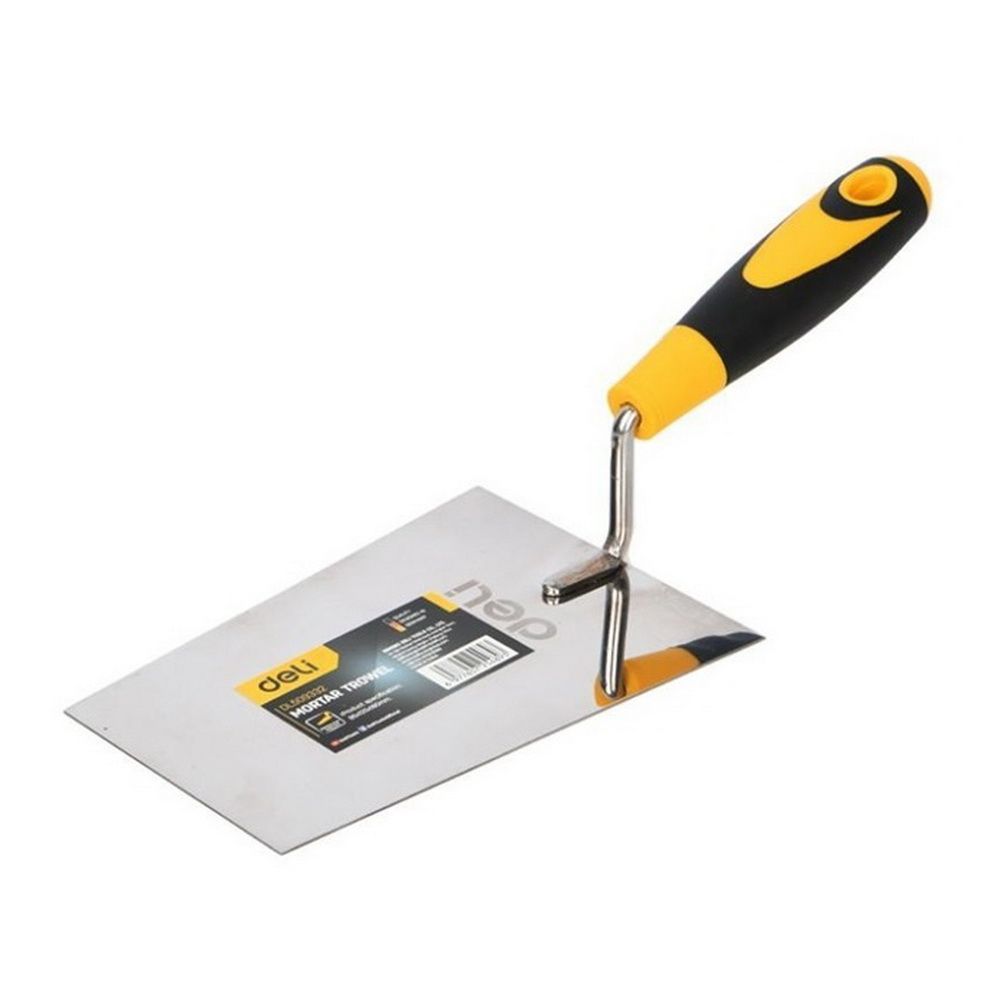 Кельма (мастерок) Deli DL509332 нержавеющая сталь, рабочая часть 95х125х180мм, форма "трапеция", прорезиненная рукоятка
