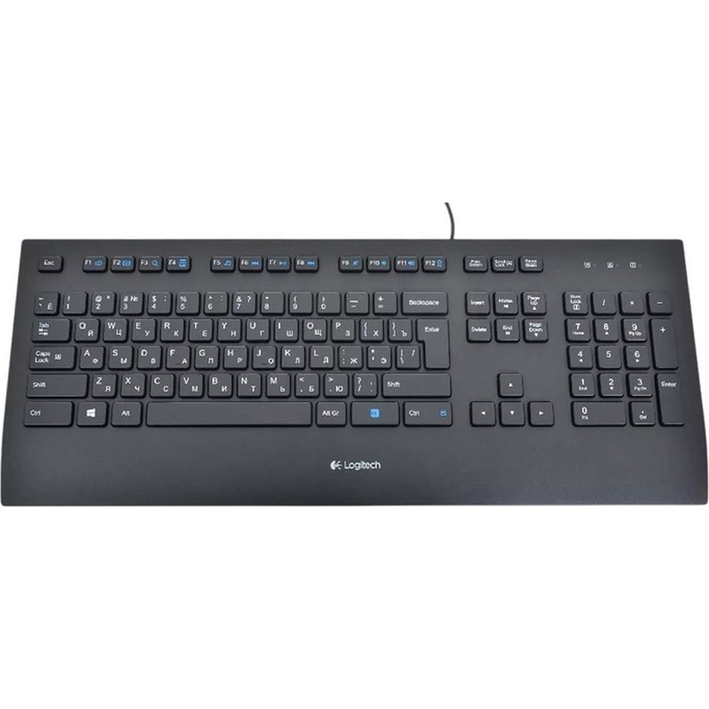 Клавиатура Logitech K280E |920-005215| черная, низкопрофильная, 103 клавиши, подставка под запястья, защита от воды, USB 1,8м, (046832)