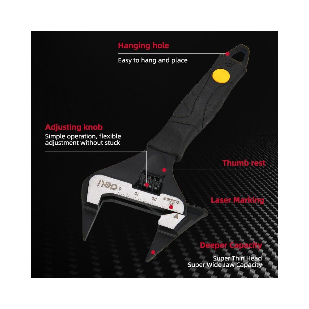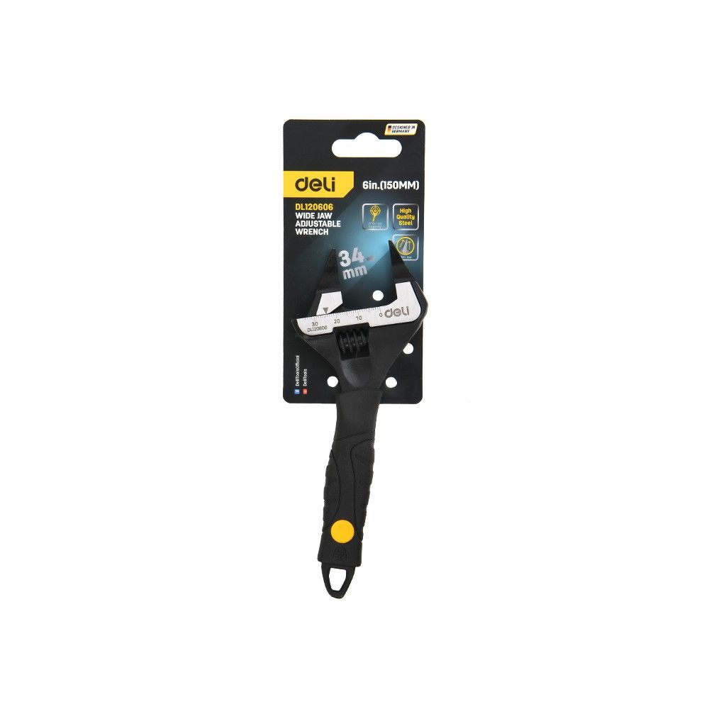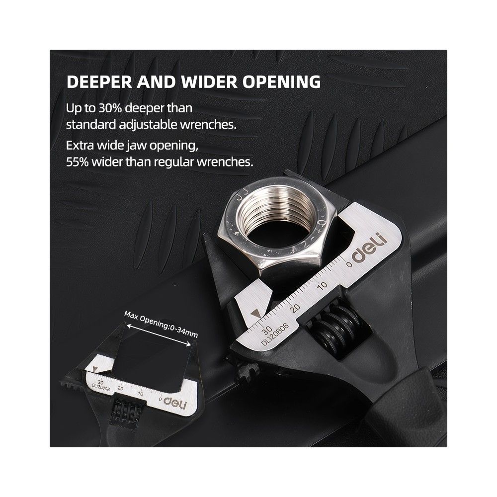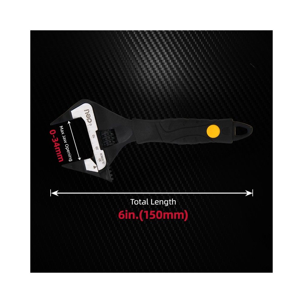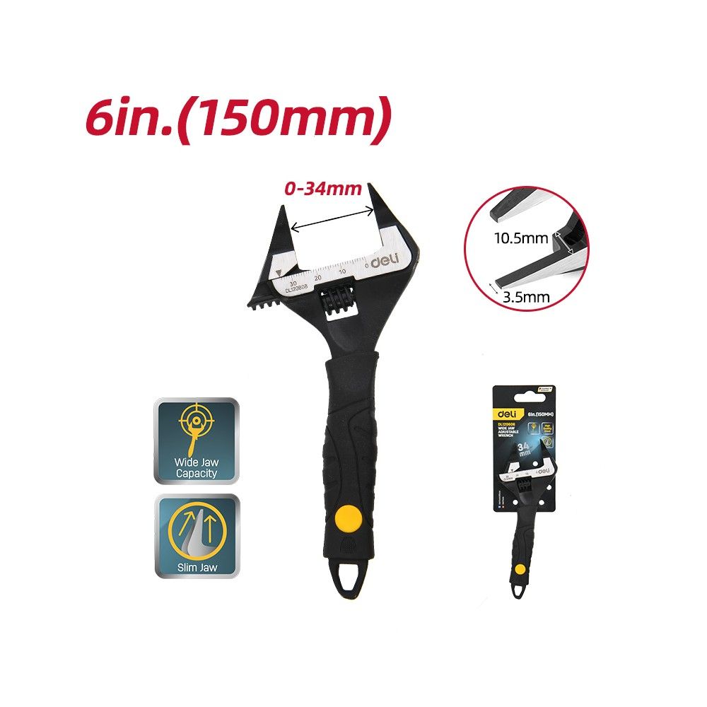 Ключ разводной с ультратонкими губками и увеличенным зевом Deli DL120606 150мм, диапазон захвата 0-34мм
