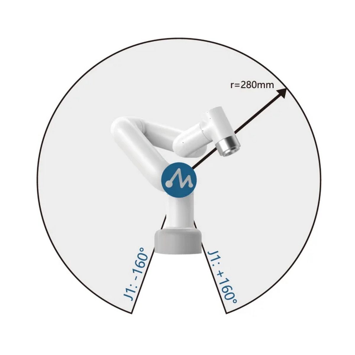 6-осевой (6-Axis). Радиус действия - 280мм. Оснащён интерфейсом M5Stack, поддерживает Python и ROS.