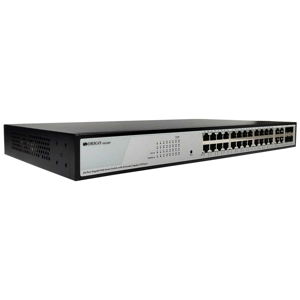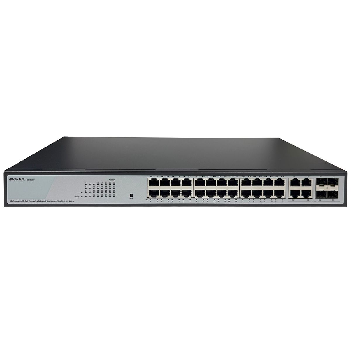 Коммутатор ORIGO OS2328P/360W/A1A Настраиваемый L2 PoE-коммутатор 24x1000Base-T PoE, 4xCombo 1000Base-T/SFP, PoE-бюджет 360 Вт, комплект для установки в 19" стойку