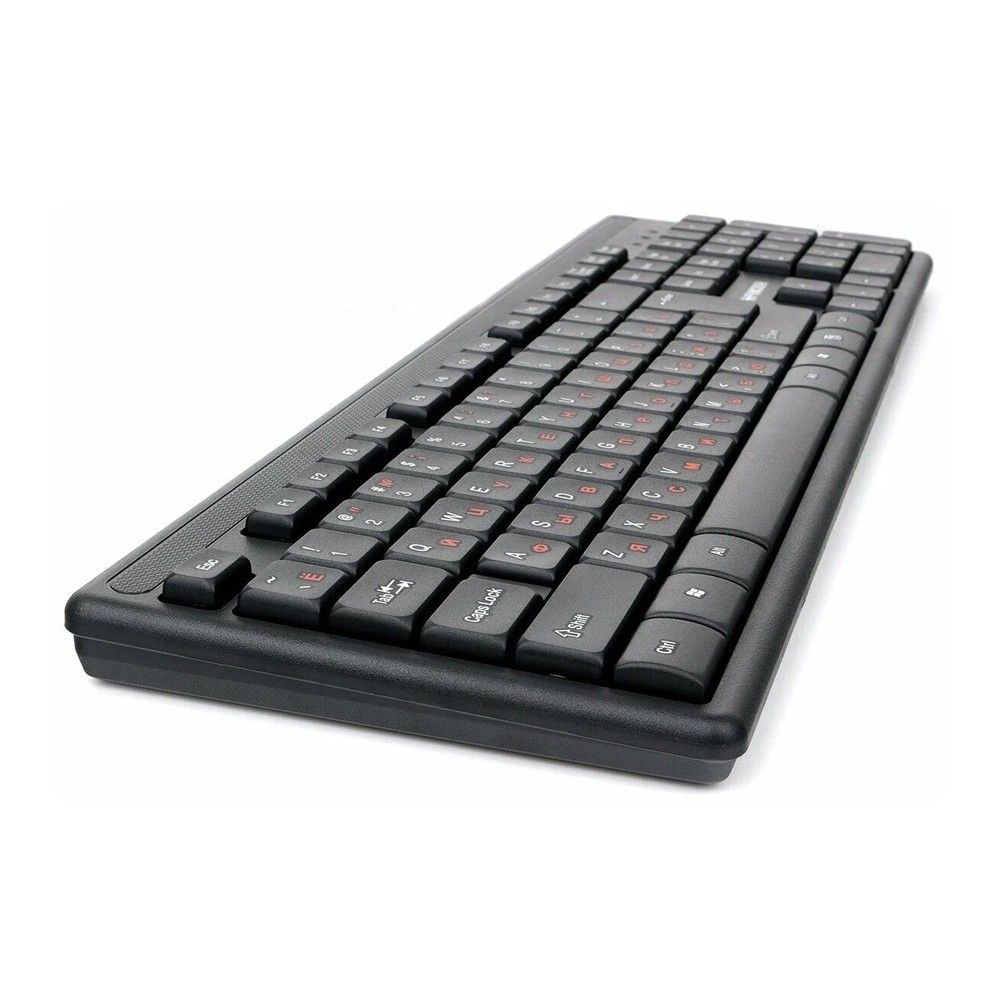 Клавиатура имеет стандартную раскладку с цифровым блоком и подходит для выполнения повседневных задач.