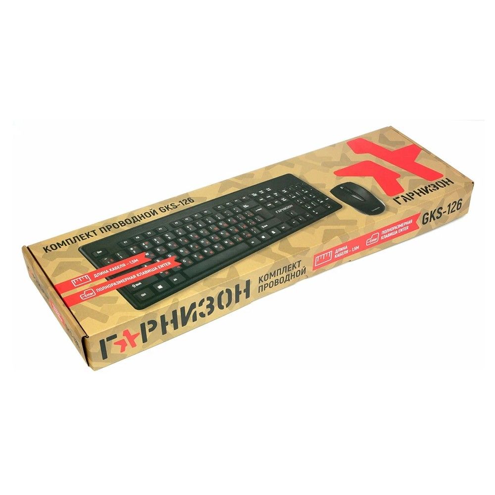 Комплект клавиатура и мышь Гарнизон пров. GKS-126 черный, 104кл, 3кн, 1000DPI, кабель клав 1.5м, мышь 1,3м