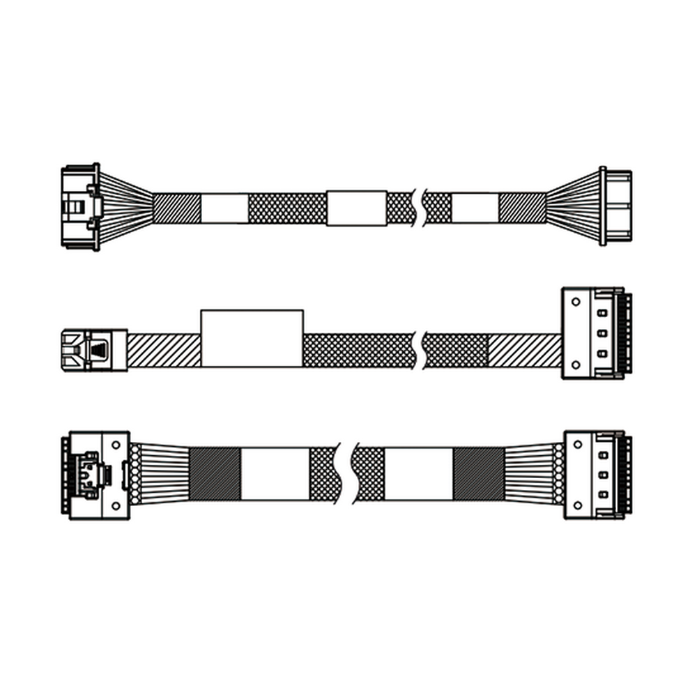 Внутренний кабель питания 12 Вольт (320 мм), внутренний интерфейсный кабель Mini-SAS HD x4 - SlimSAS x8 (680 мм), внутренний интерфейсный кабель SlimSAS x8 -SlimSAS x8 (780 мм)