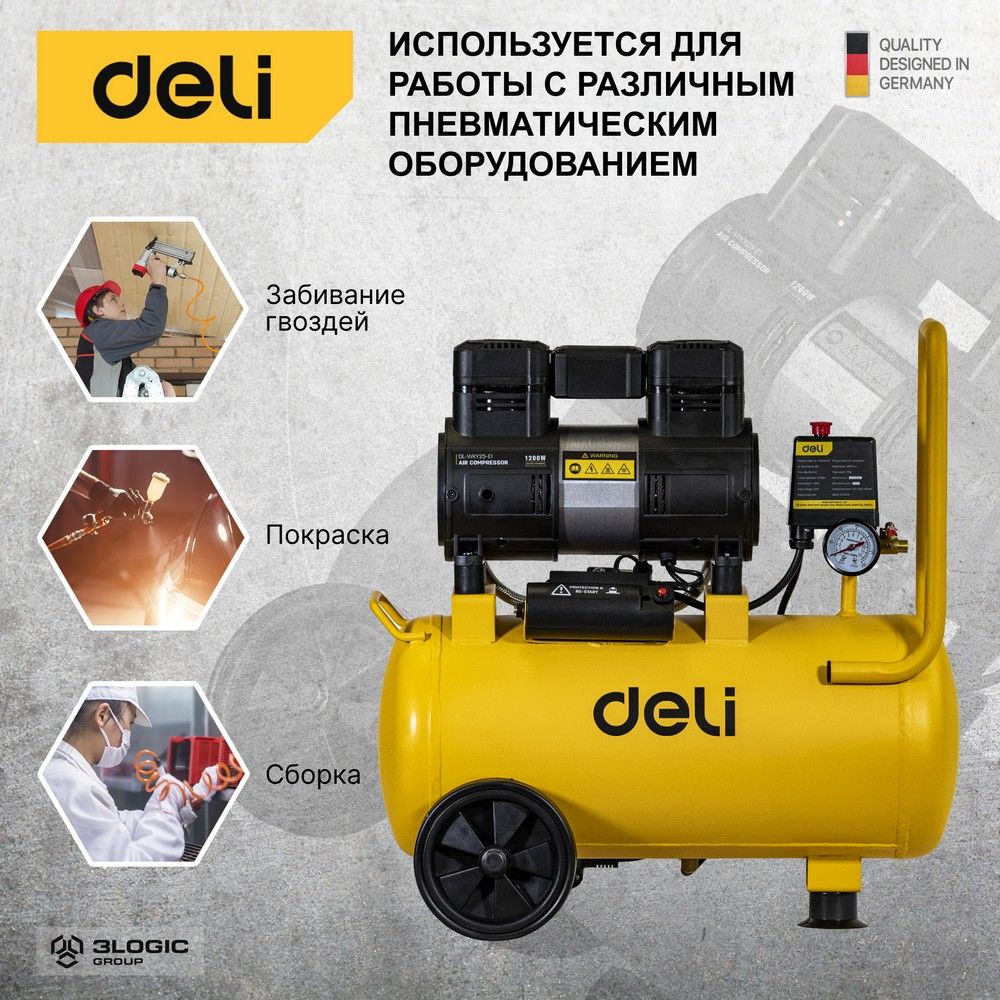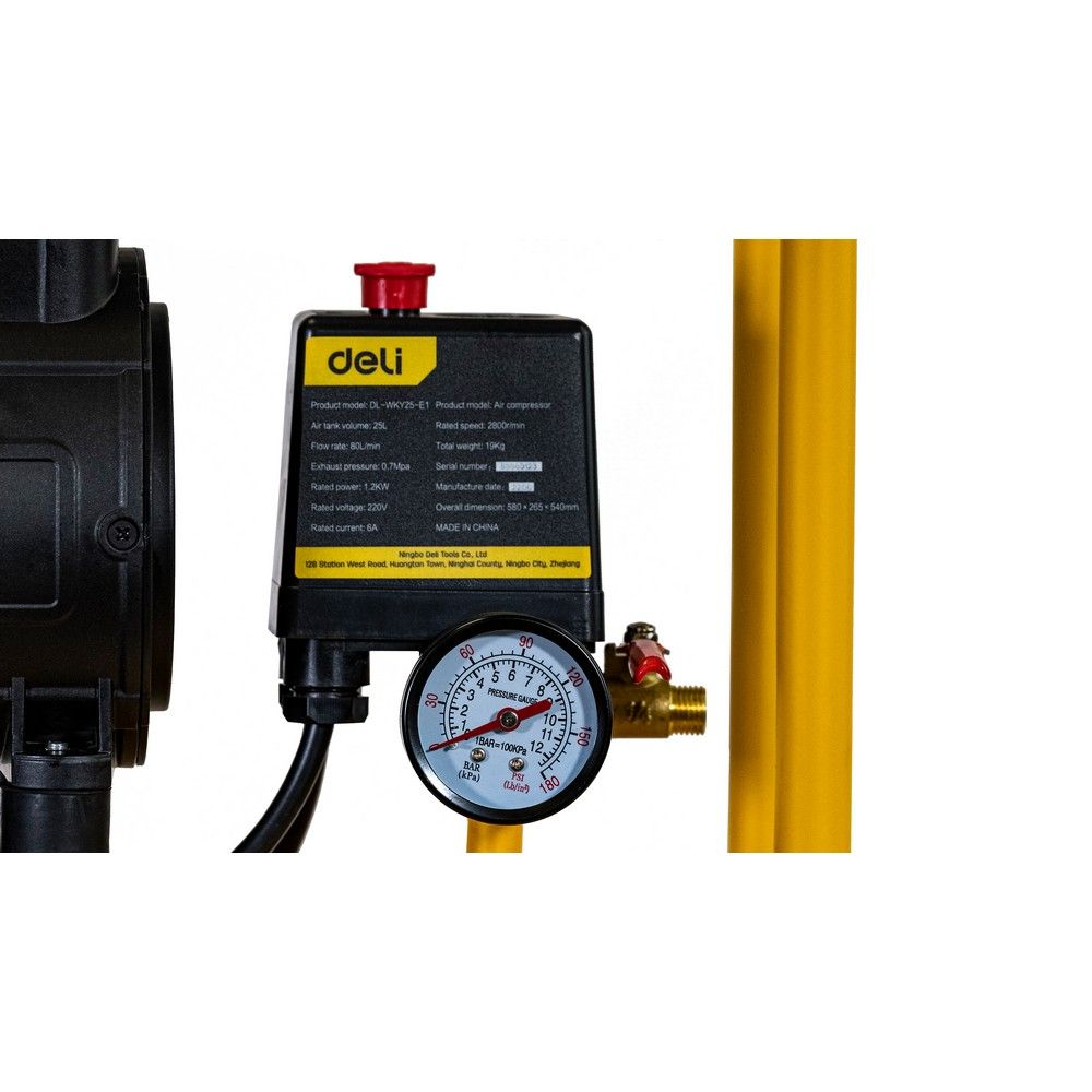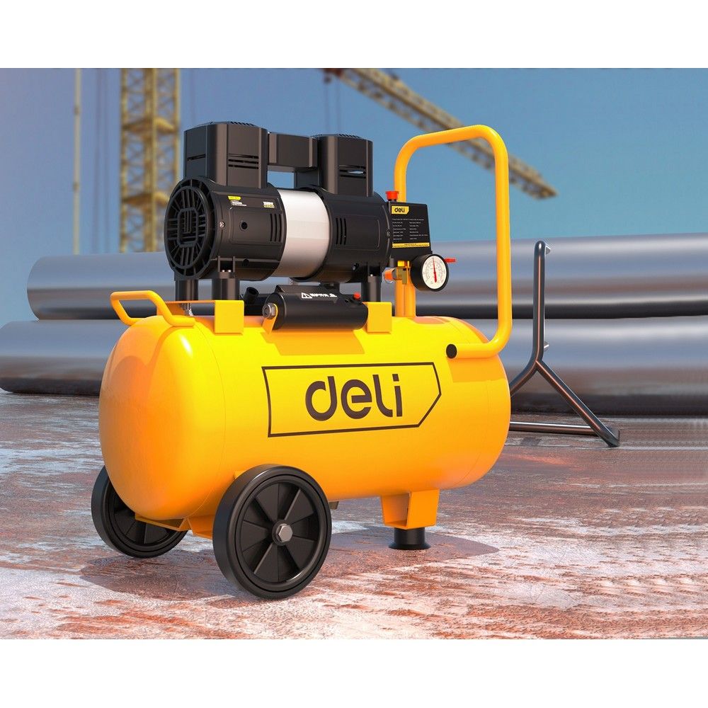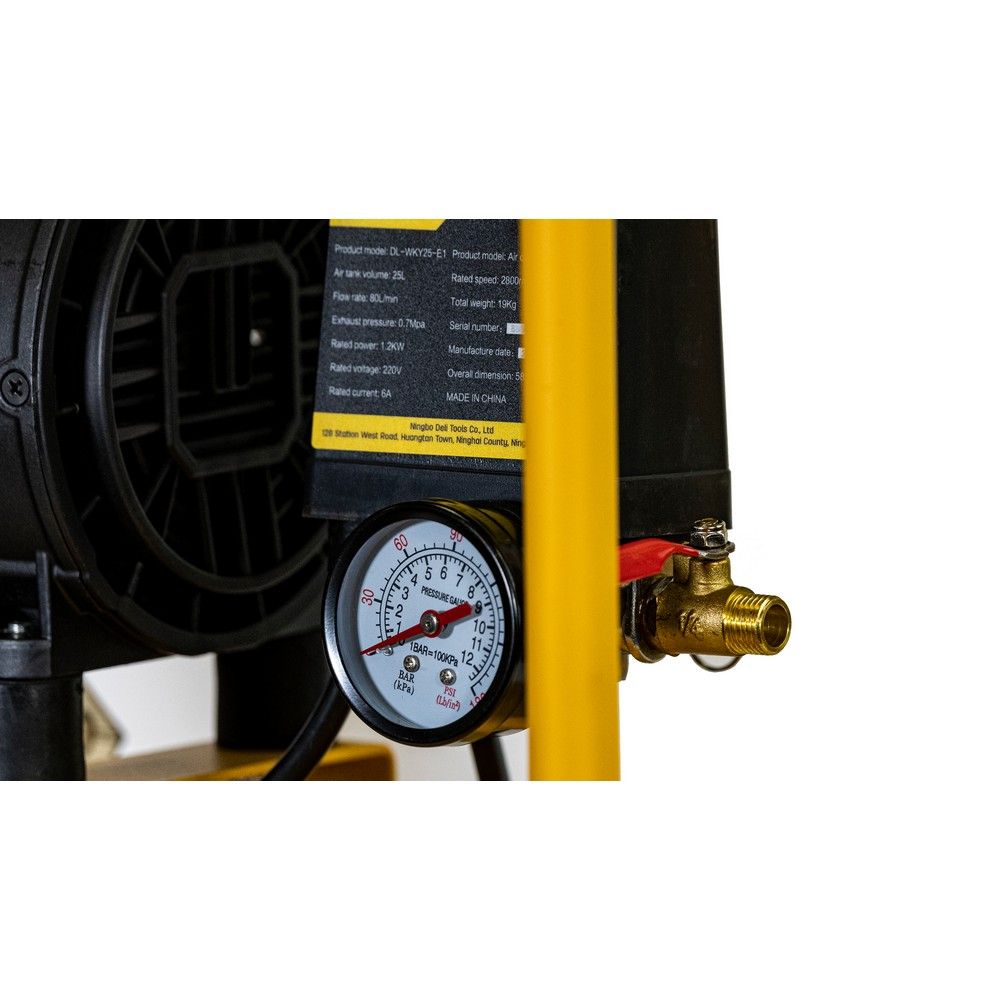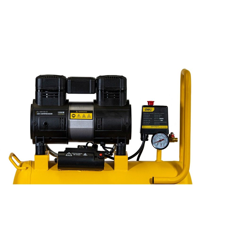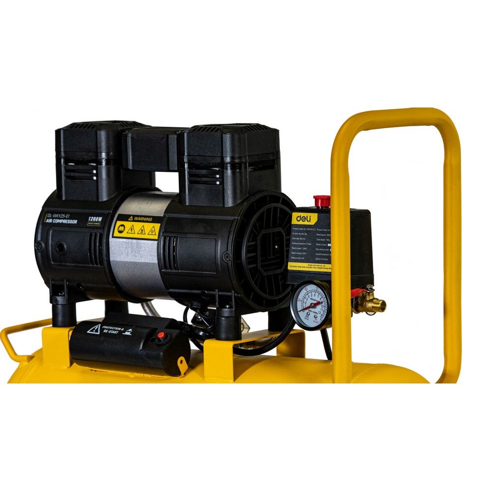 Компрессор воздушный безмаслянный Deli DL-WKY25-E1 (мощность 1,2кВт, 25литров, 80л/мин, 7атм, 2800об/мин)