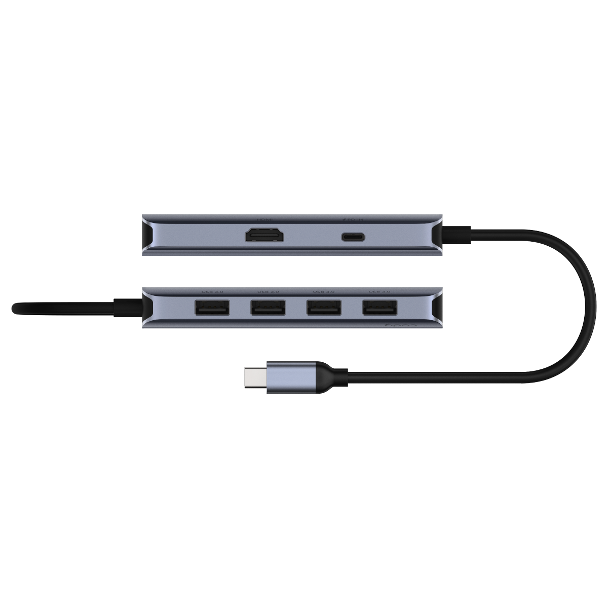 Концентратор CUDY UH500 6-IN-1 USB-C Hub with 4K HDMI 6-IN-1 USB-C Hub, Aluminium housing, 1 USB-C 3.0 5Gbps male connecter with 20cm cable, 1x 4K@30Hz HDMI Port, 1x 100W USB-C port for PD Charging, 4x USB-A 5Gbps Data Ports, compatible with MacBook Pro, MacBook Air, Dell XPS, Lenovo Thinkpad, HP Laptops an