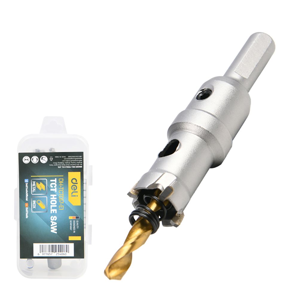 Коронка по металлу твердосплавная с центрирующим сверлом Deli DH-TCT017-E1 диаметр 17мм, шестигранный хвостовик