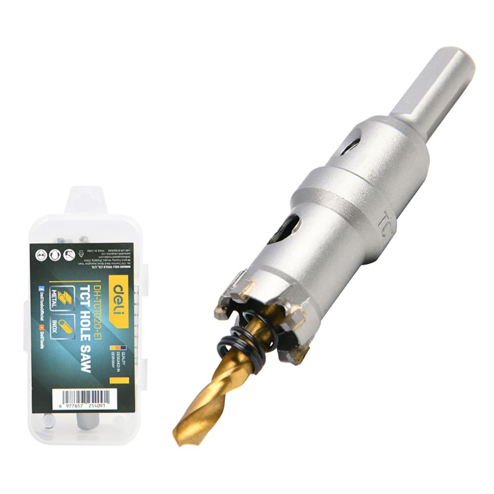 Коронка по металлу твердосплавная с центрирующим сверлом Deli DH-TCT020-E1 диаметр 20мм, шестигранный хвостовик