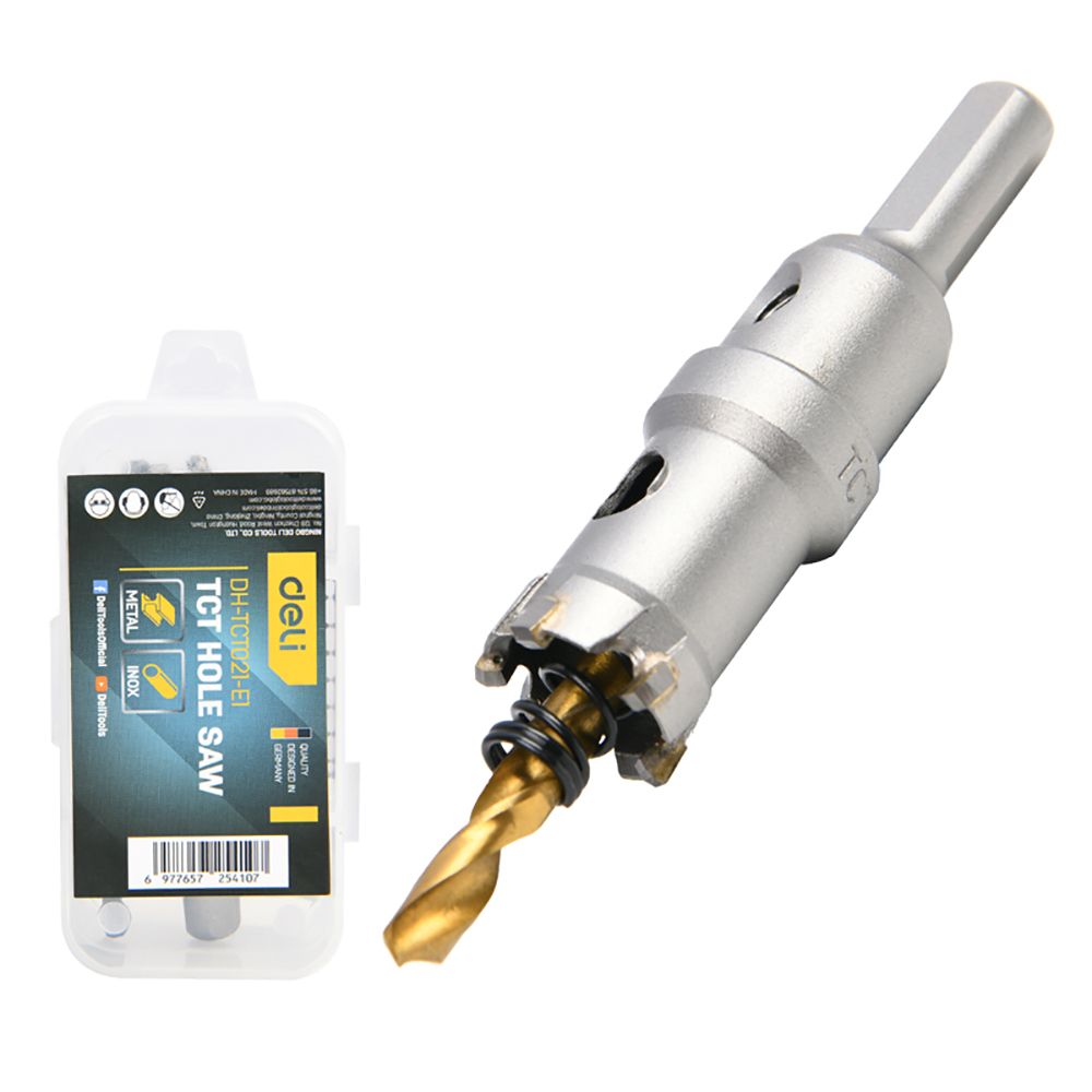 Коронка по металлу твердосплавная с центрирующим сверлом Deli DH-TCT021-E1 диаметр 21мм, шестигранный хвостовик