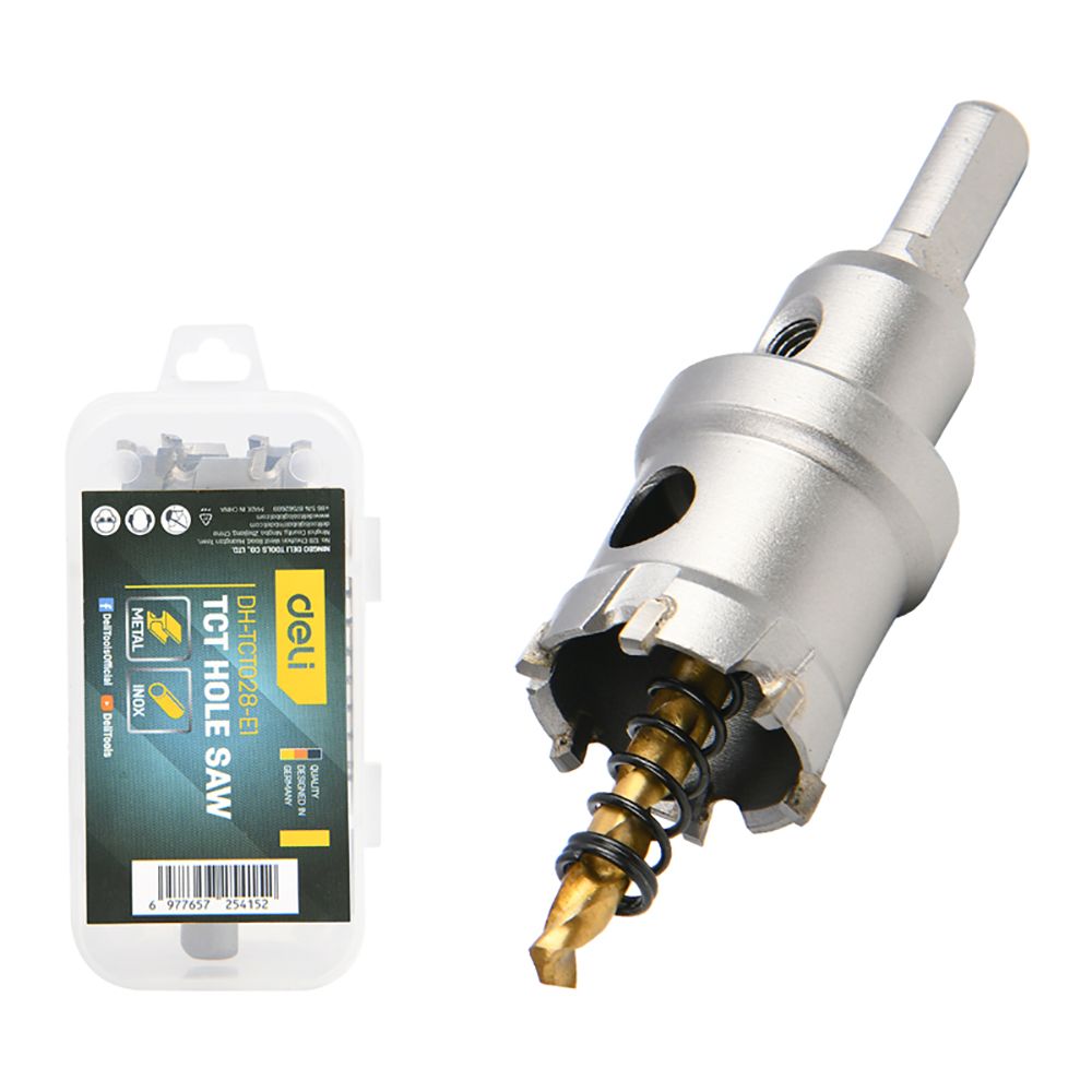 Коронка по металлу твердосплавная с центрирующим сверлом Deli DH-TCT028-E1 диаметр 28мм, шестигранный хвостовик