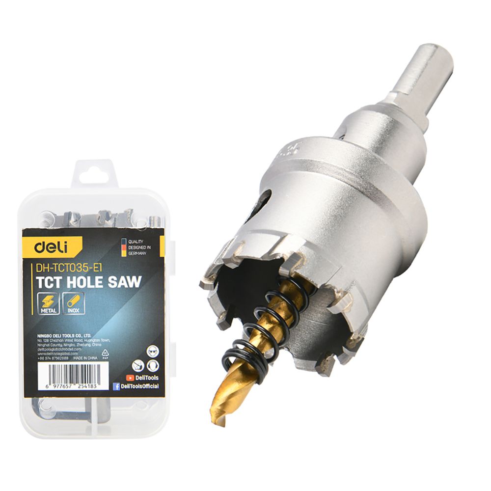 Коронка по металлу твердосплавная с центрирующим сверлом Deli DH-TCT035-E1 диаметр 35мм, шестигранный хвостовик